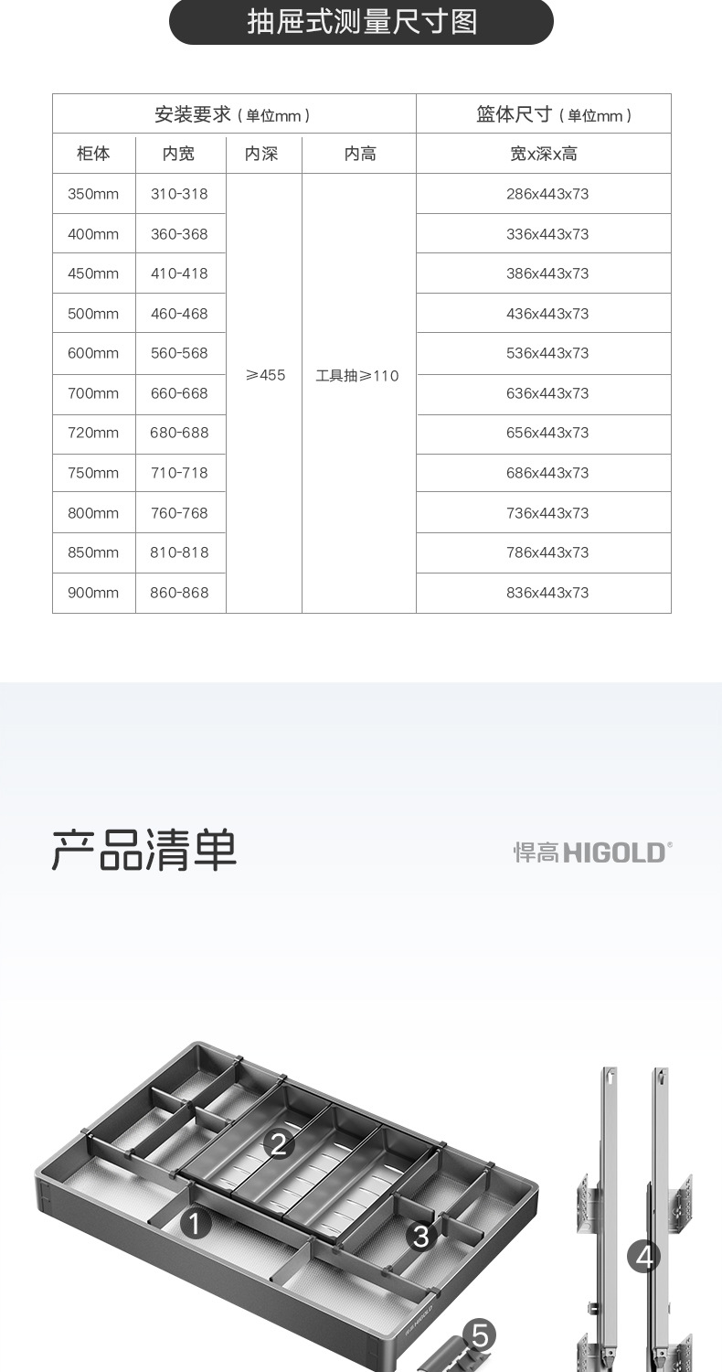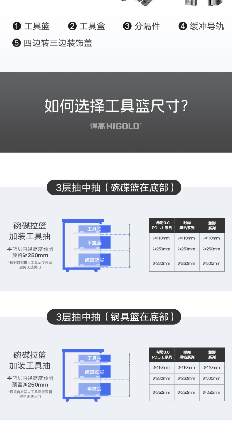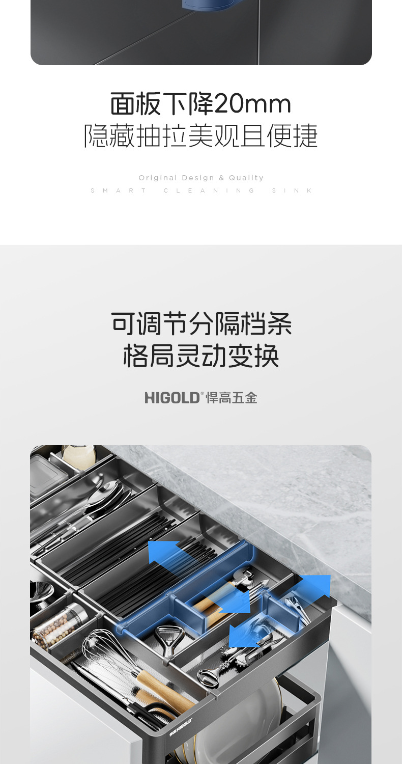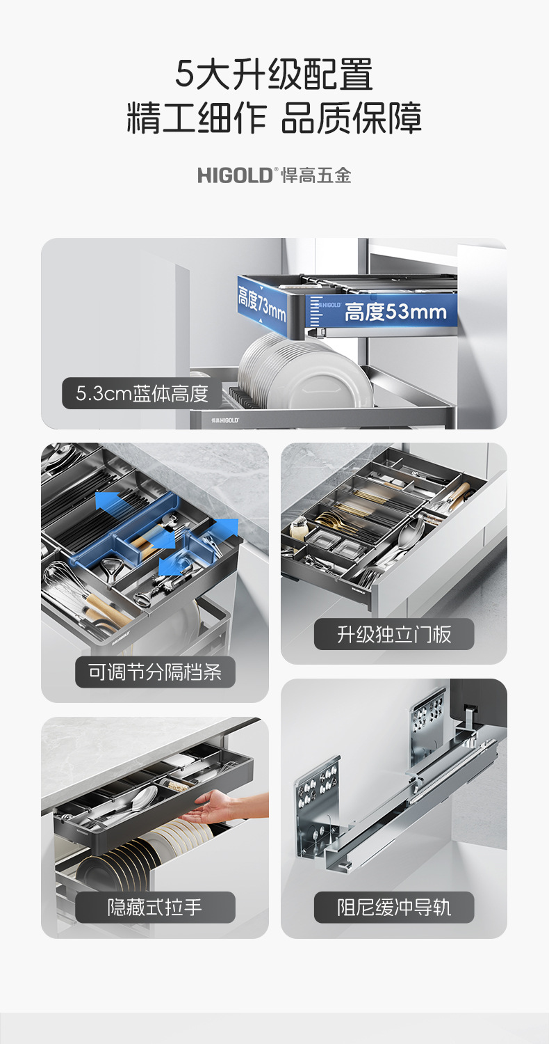 HIGOLD悍高希勒3.0mini碗碟篮平篮太空铝玻璃橱柜悍高拉篮