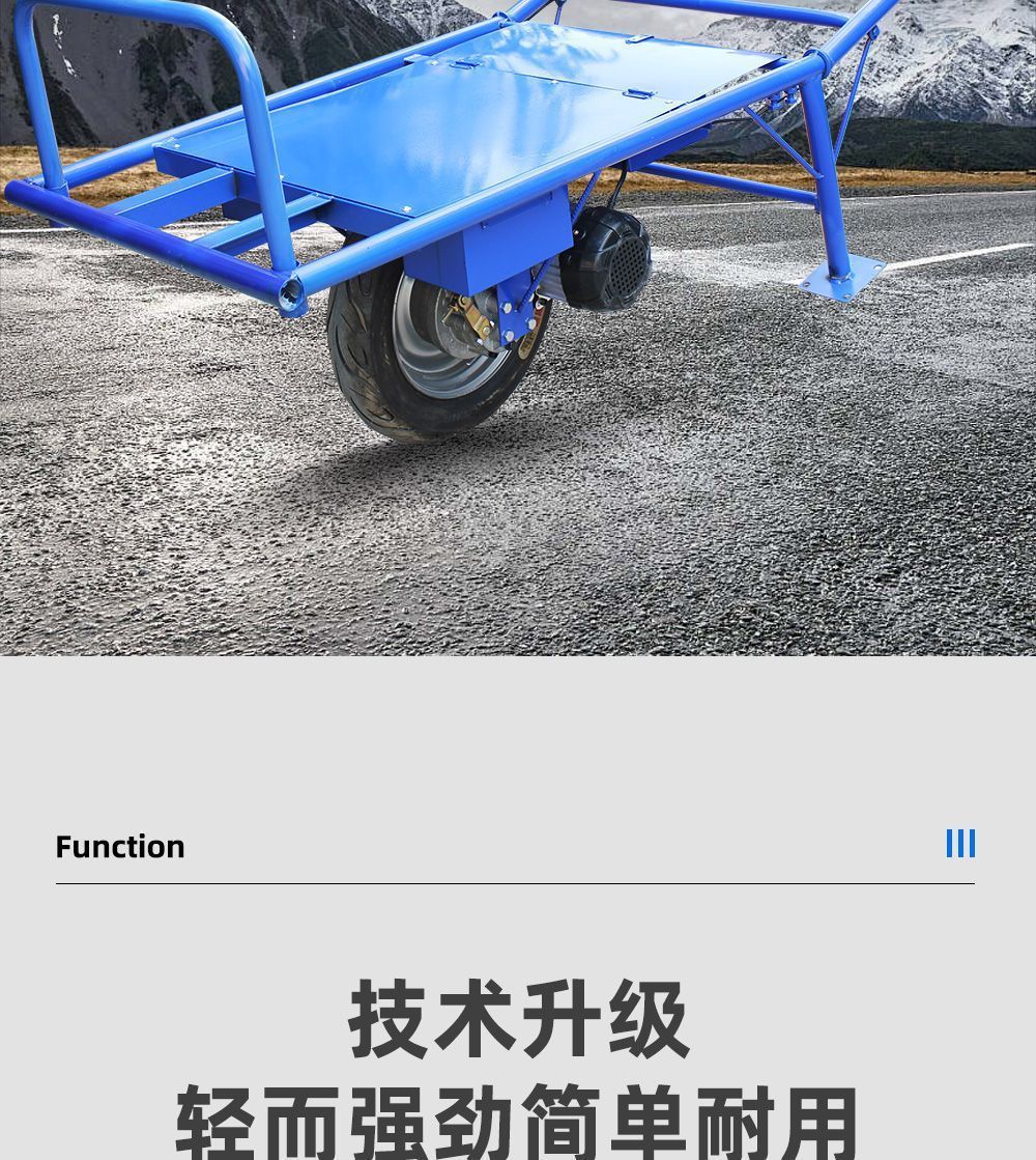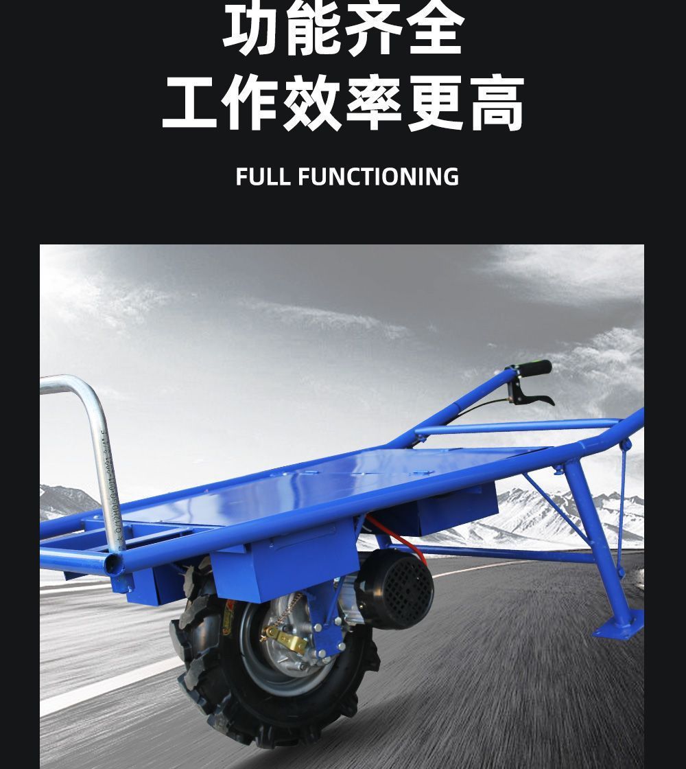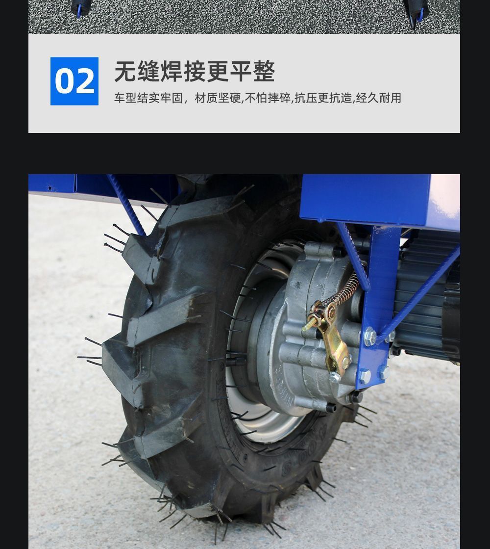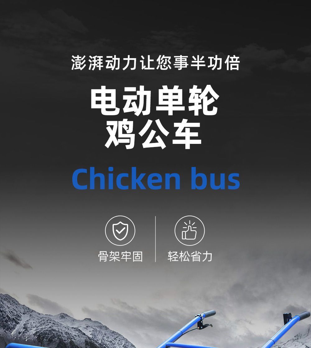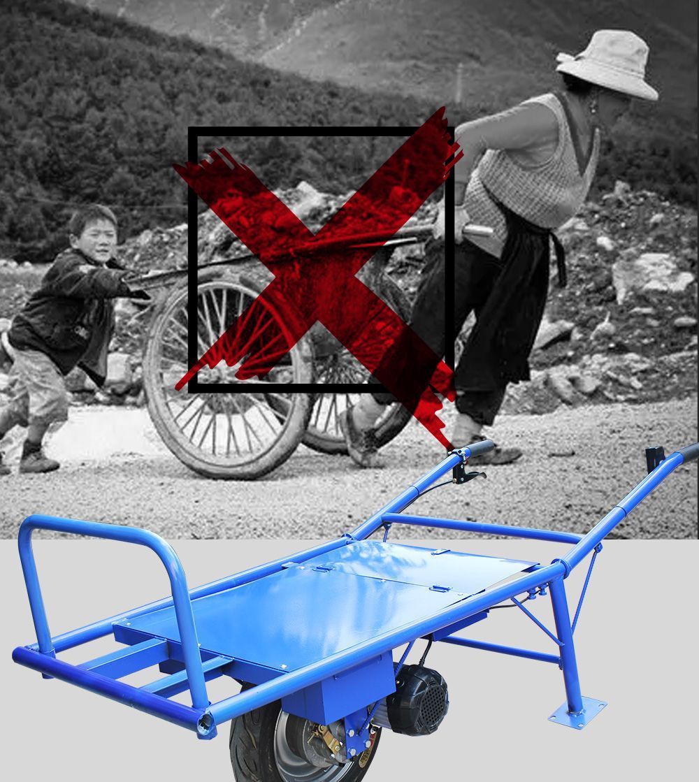 農業用の鶏のバスは坂を登ります。小型の電気果樹園を押して、一輪車を輸送します。
