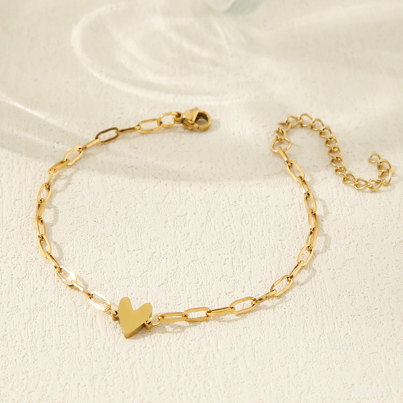 此款产品手链的材质为18K金不锈钢,手链的长度为16cm,手链延长为5cm,重量为3.5g,opp袋装!