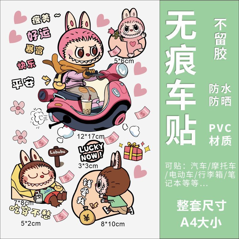 布の布のlabubuの電気自動車の電気自動車のアイデアのステッカーの防水の装飾の膜の個性の漫画は傷を遮ります