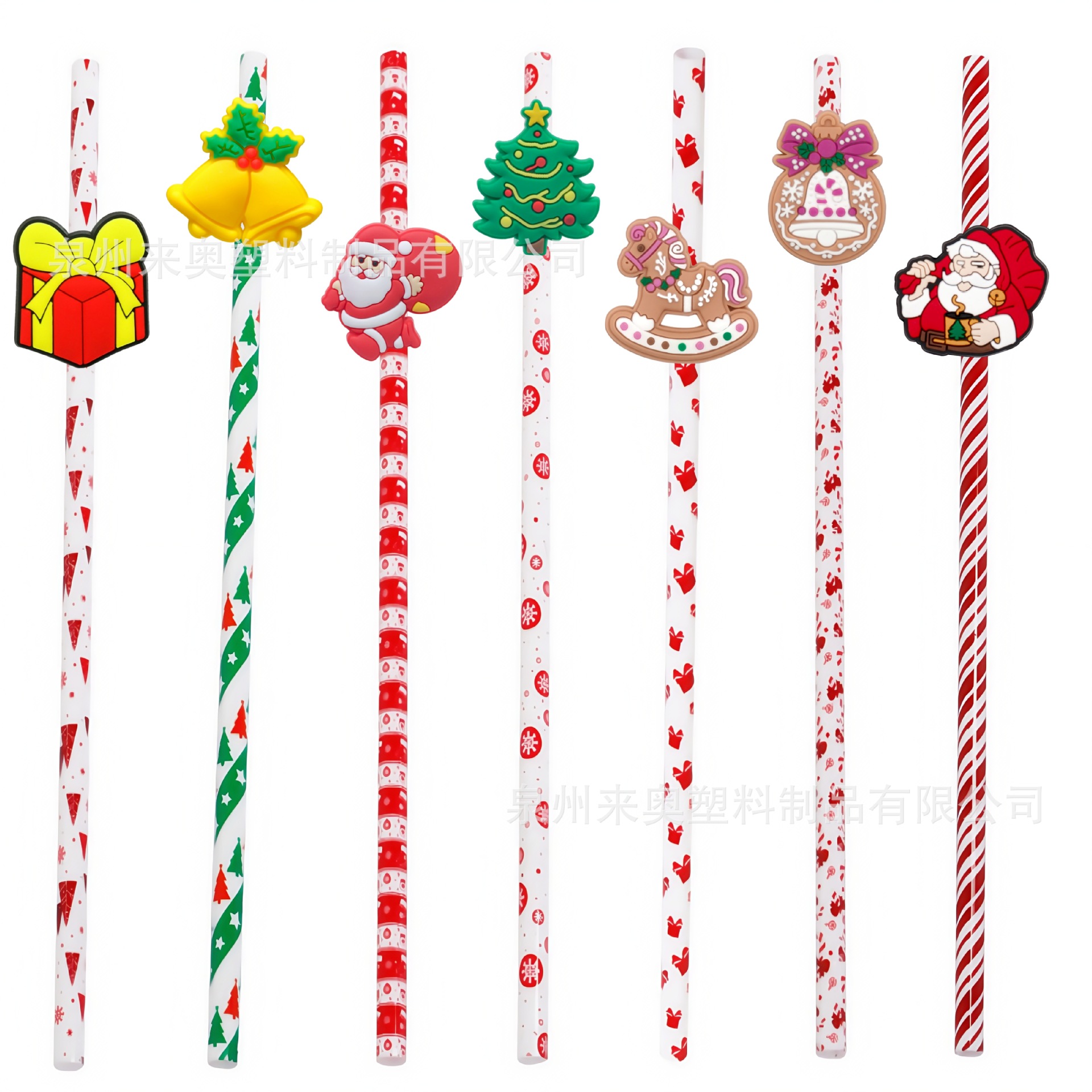 圣诞可重复使用塑料吸管红白条纹吸管圣诞节饮用吸管带环