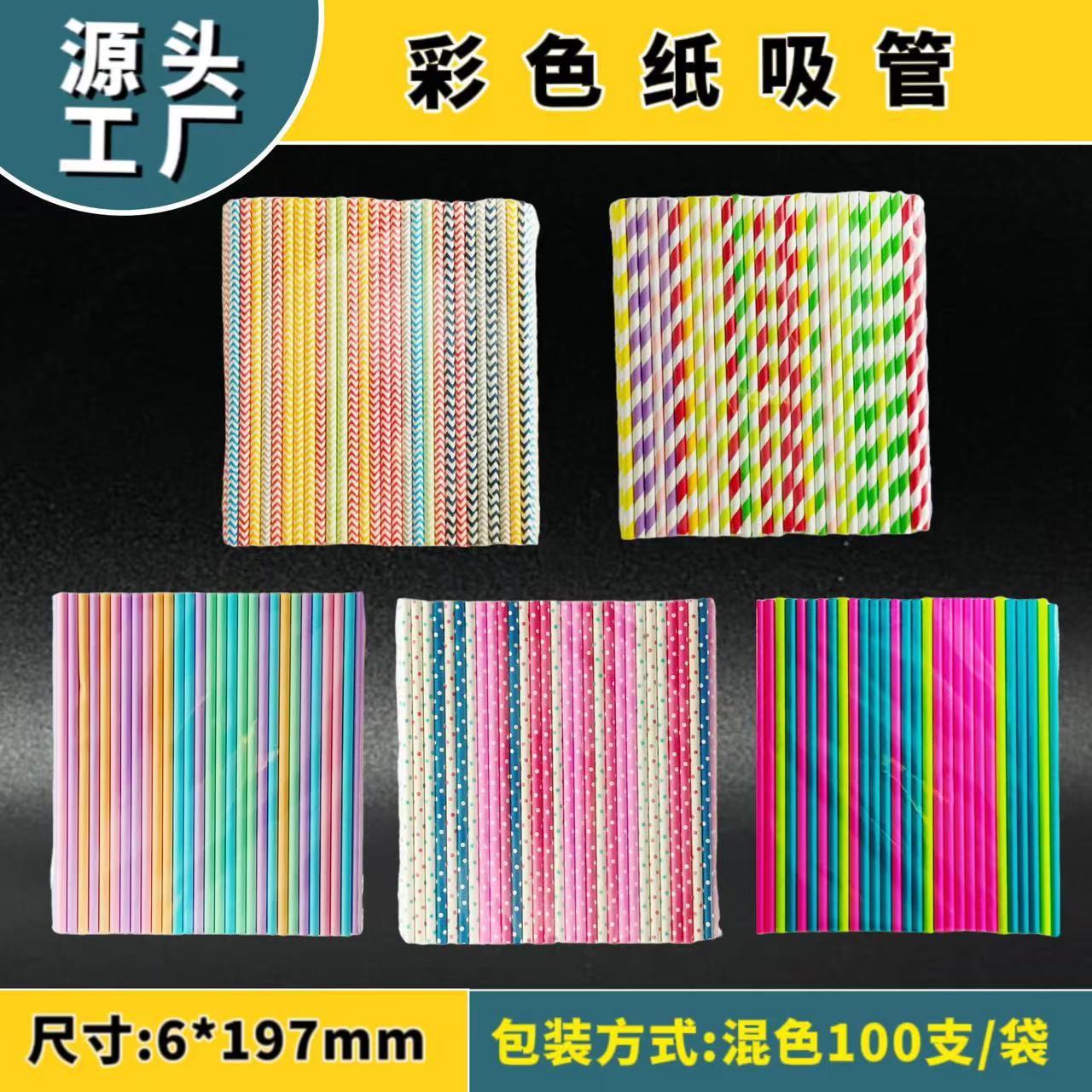 25支现货批发6*197条纹纸吸管一次性可降解彩色纸质吸管饮料奶茶