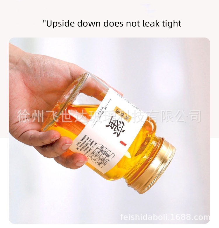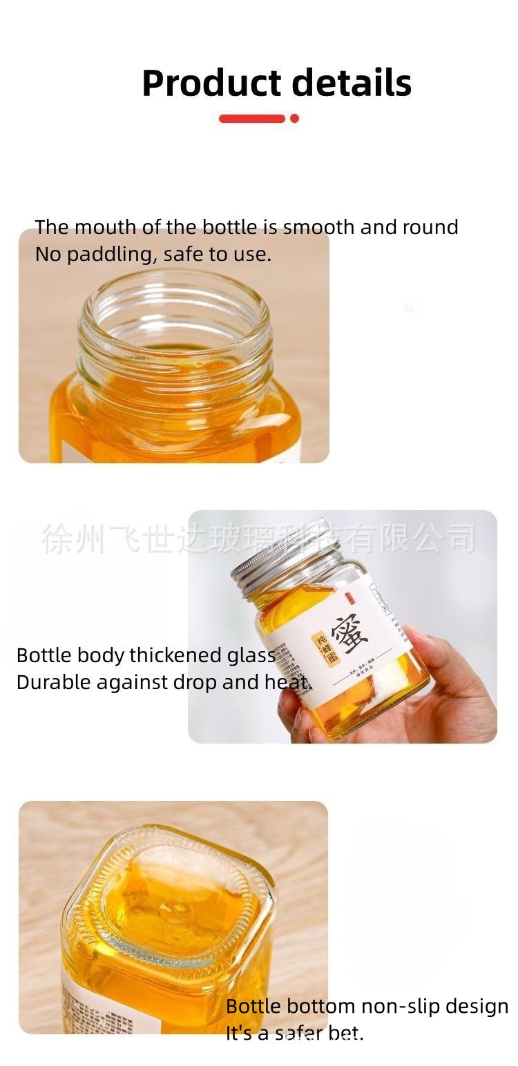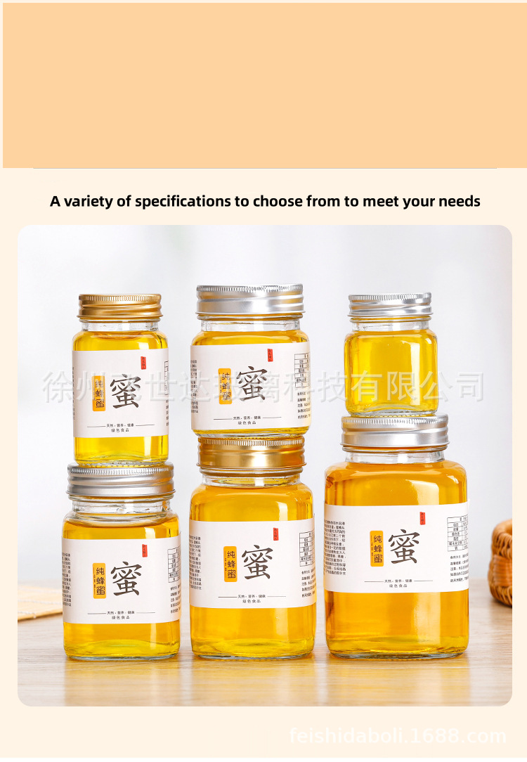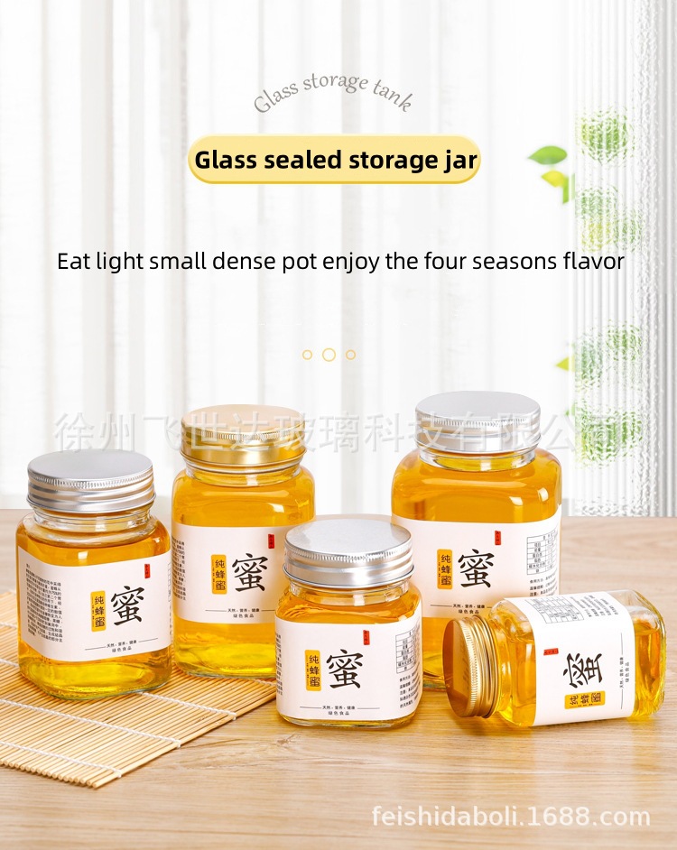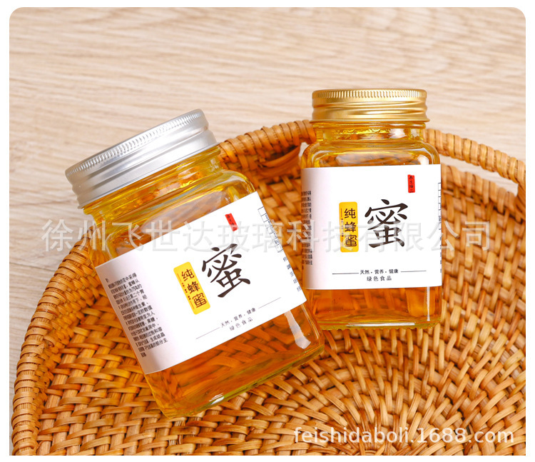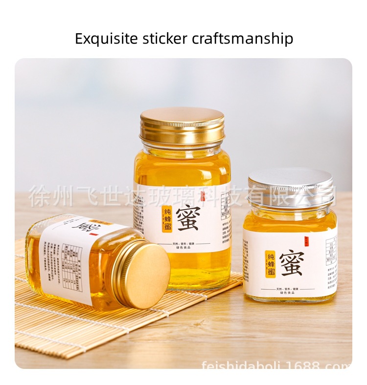 国境を越えたアマゾン透明ガラスアルミ蓋角型蜂蜜瓶家庭用ジャム瓶ビワペースト貯蔵密封缶