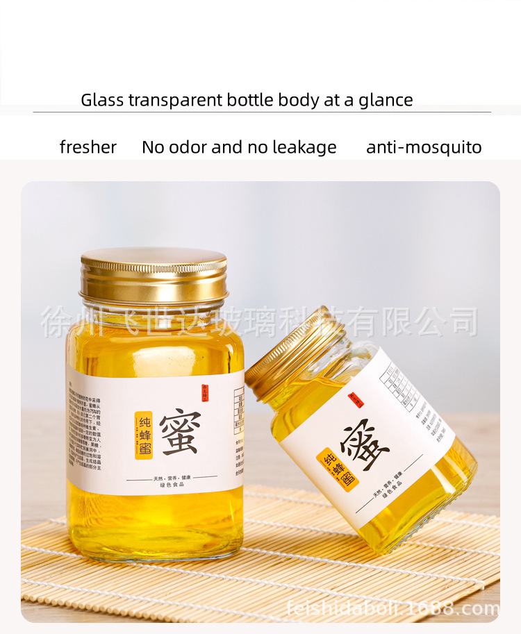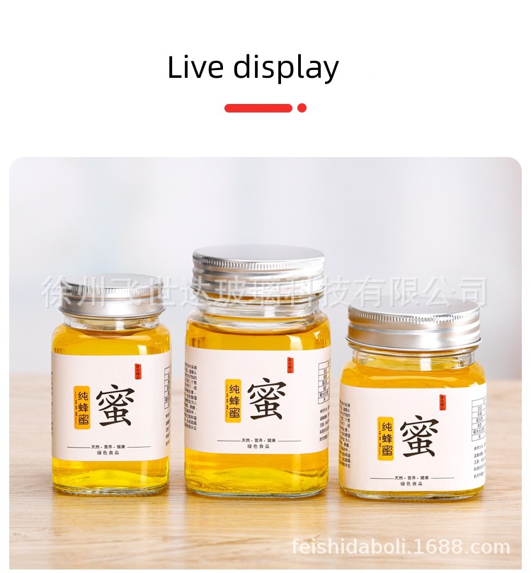 方形透明玻璃蜂蜜瓶喜蜜瓶鲜炖燕窝瓶家用酱菜瓶罐头瓶杂粮储物罐