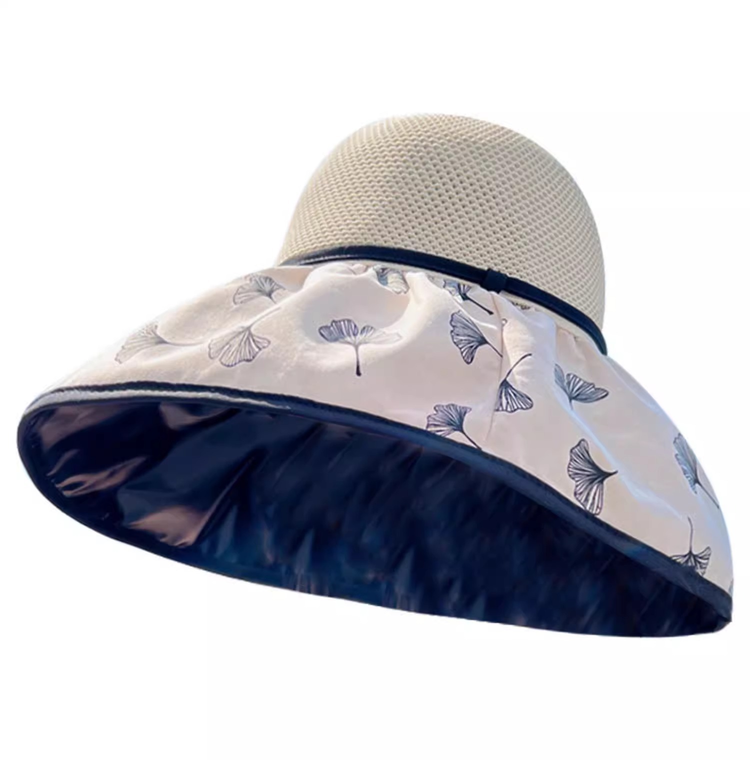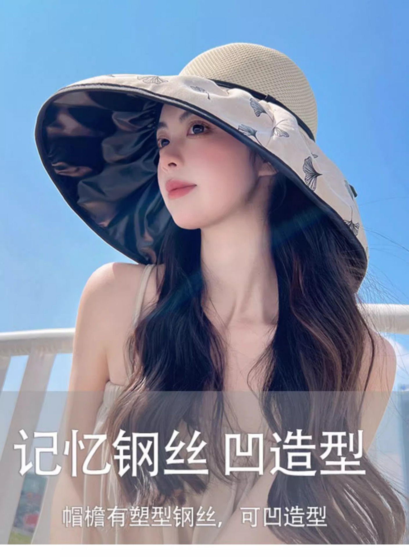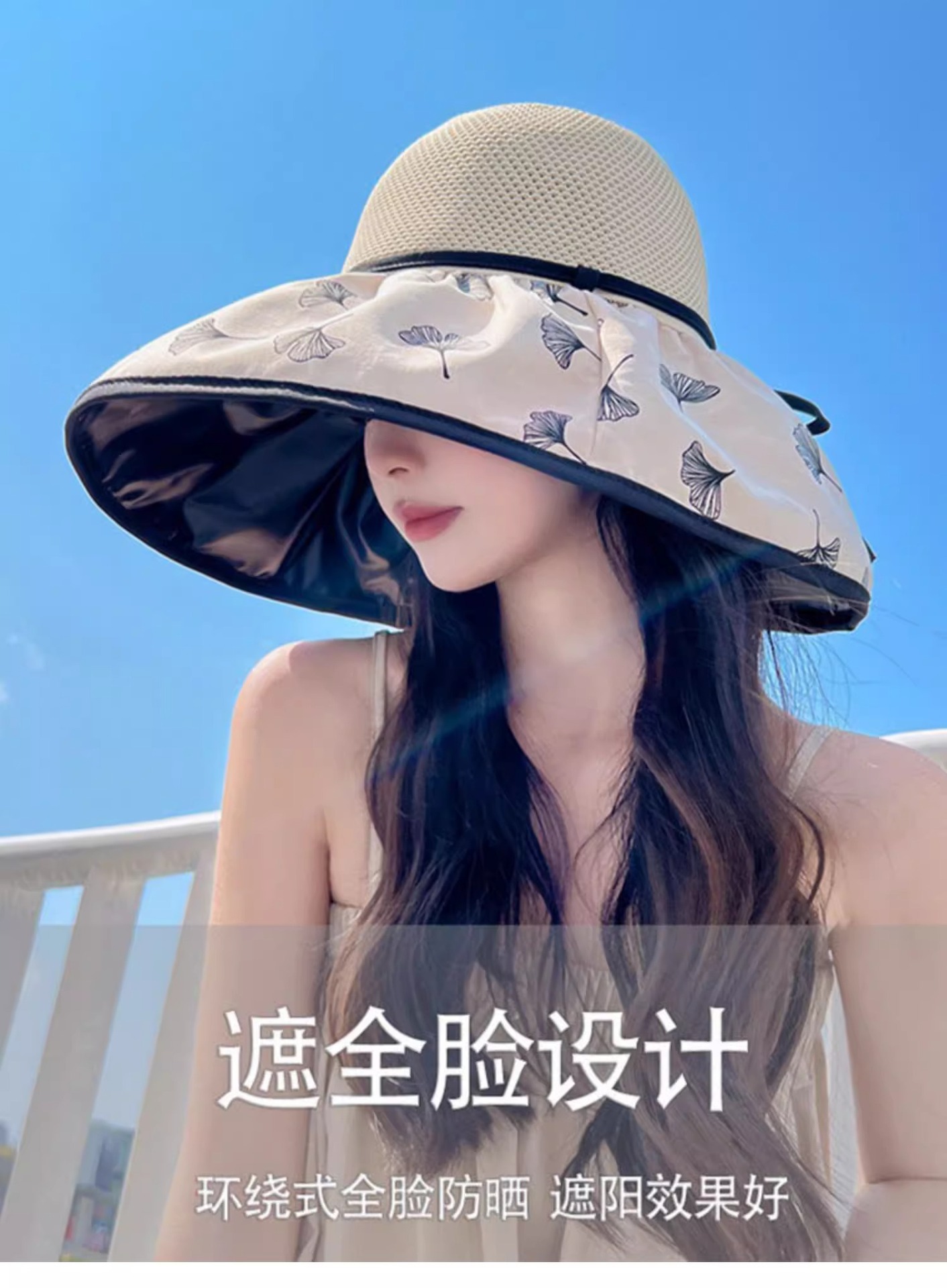 2025新型韓国版屋外黒ゴム日よけ日焼け止め百合太陽帽子女性モデル夏蝶結び漁師帽