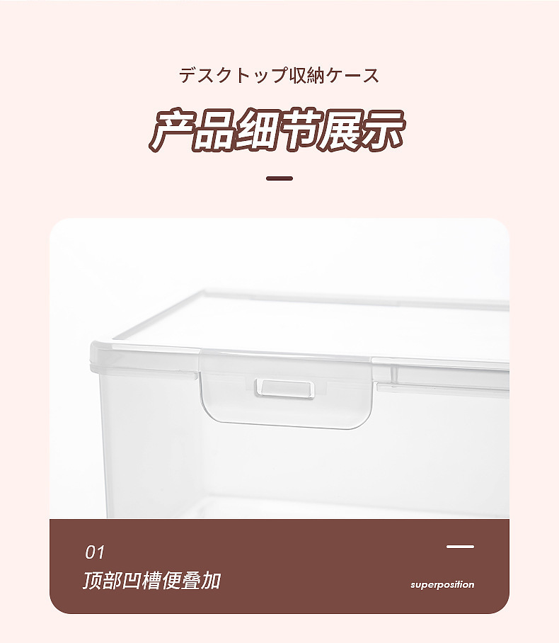 デスクトップ収納ボックス狭い長型透明蓋付き深型雑物整理ボックス長方形挟み収納ボックス収納ボックス