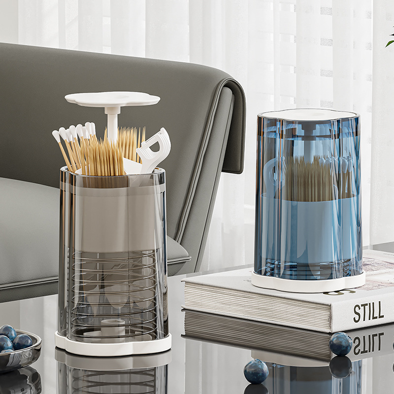 押し押し展开式爪楊枝ボックス家庭用デスクトップ多機能綿棒歯糸収納ボックス高級感ネット赤楊枝筒