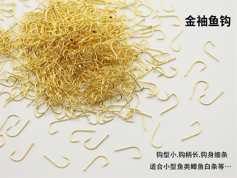 金袖鱼钩散装平打细条钩有倒刺无刺长柄钩小小号鲫鱼钩渔具垂钓钩