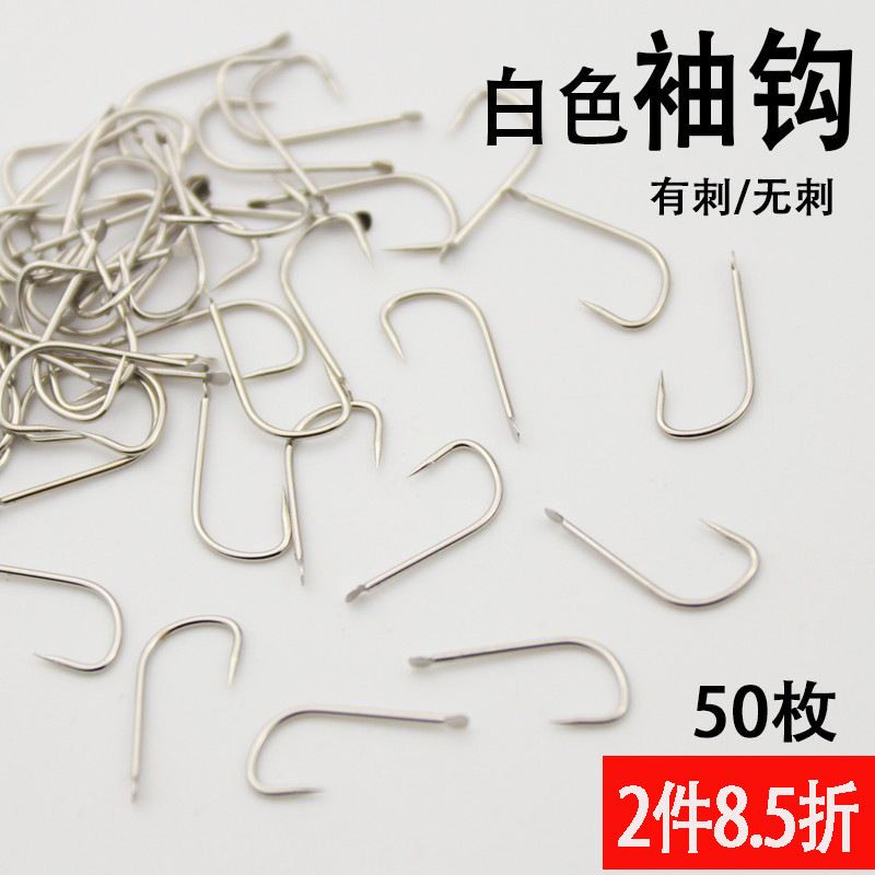 白い袖付き有刺鉄線釣り針、細いバルク袖付き釣り針、無刺鉄線釣り針、競技用小型フナ釣り針、釣り具用品