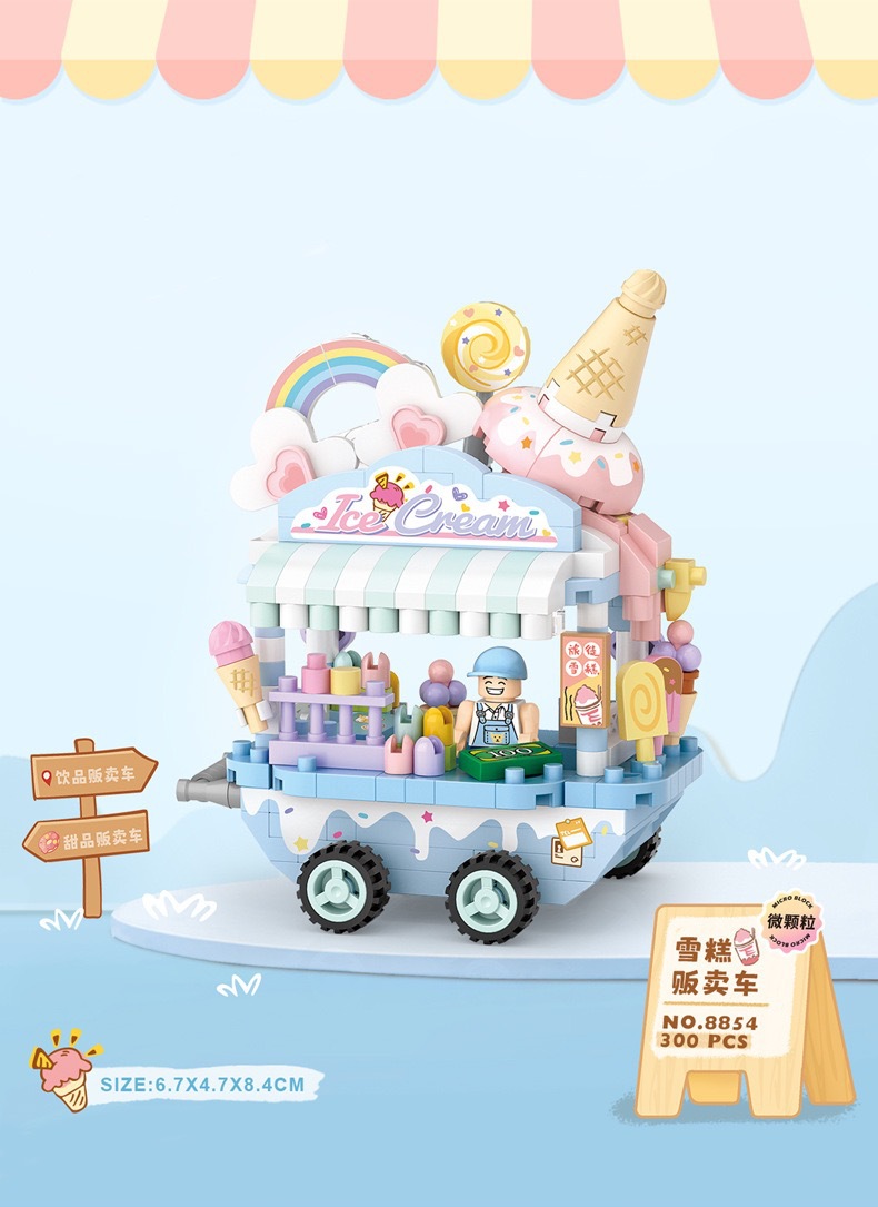 Lozマイクロ粒子8854-8856アイスクリームのデザートの街角の屋台の車の街の風景は子供のプレゼントを飾って積み木を詰めます。