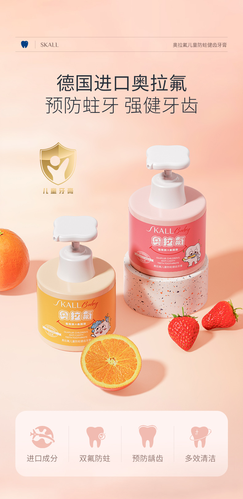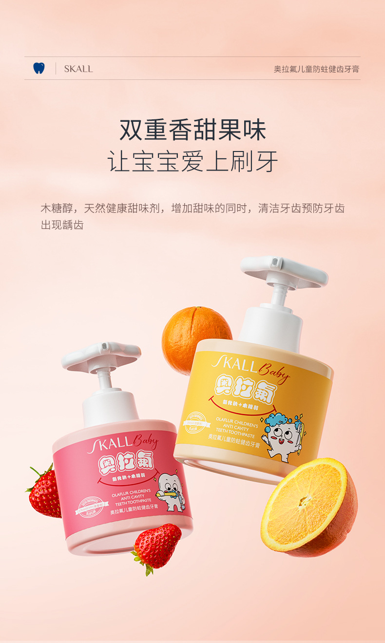 オーラフッ化物 子供用虫歯予防歯磨き粉 2-3-6-12歳の歯の生え変わり期の子供用フッ化物配合ベビー歯強化プッシュ式歯磨き粉