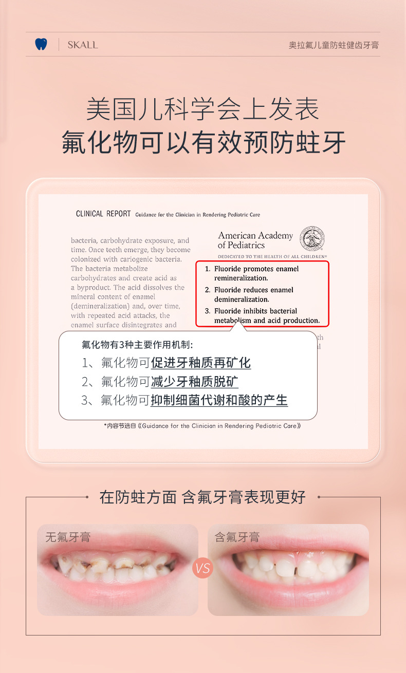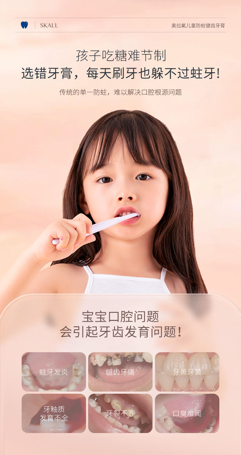 オーラフッ化物子供用プレス歯磨き粉には、1、3、6、12 歳の赤ちゃん、中型および大型の子供向けの虫歯予防および歯の保護が含まれています。歯の交換期間は広州です。