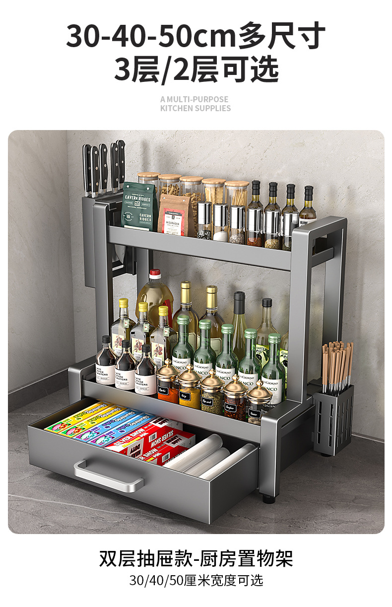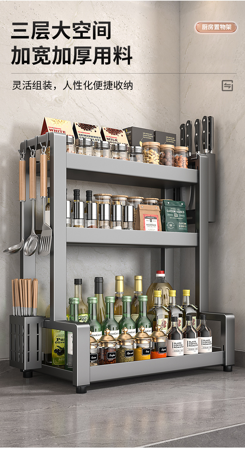 台所の多層調味料棚は卓上台所の棚を取って、多機能調味料棚を厚くする