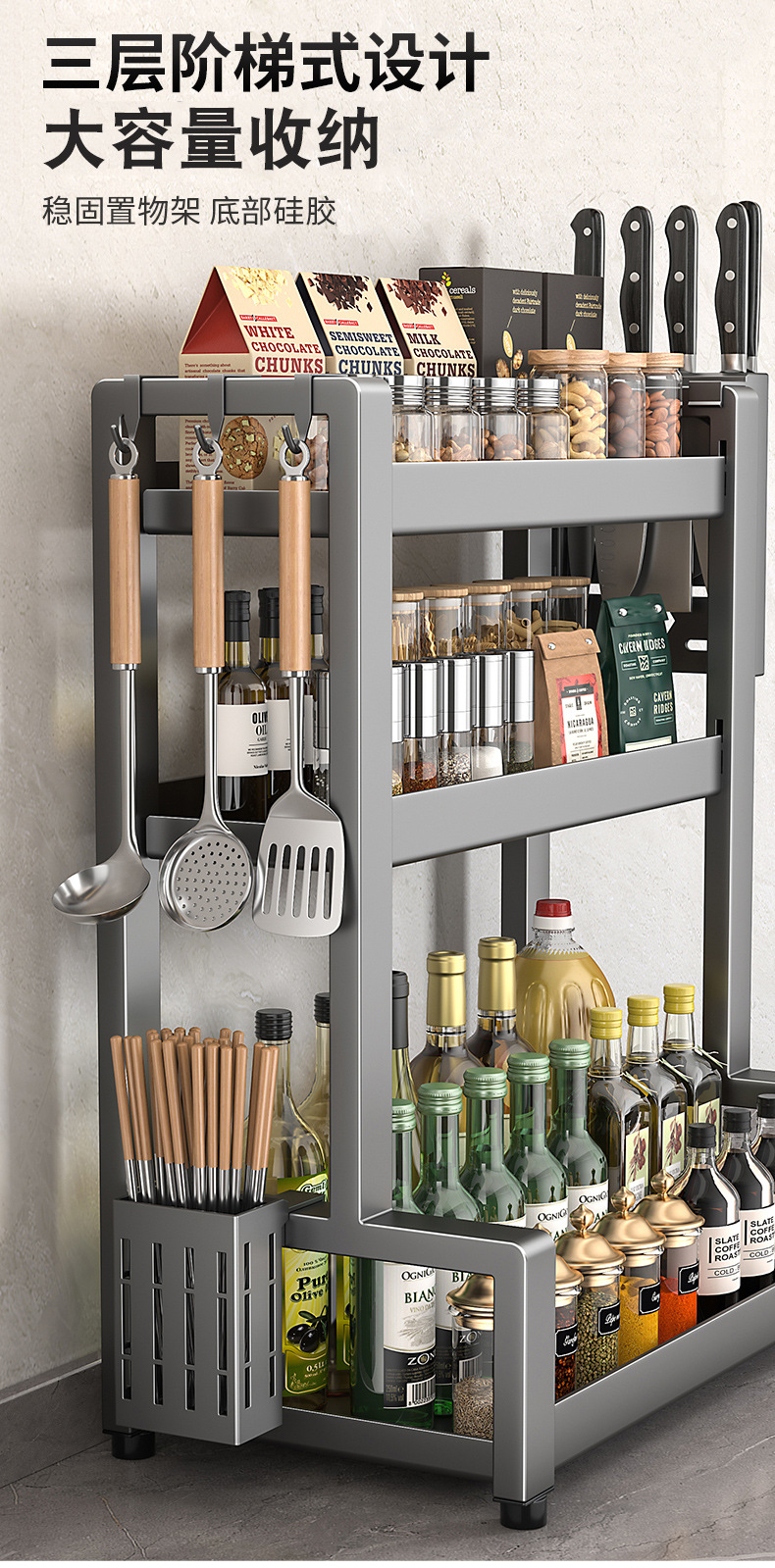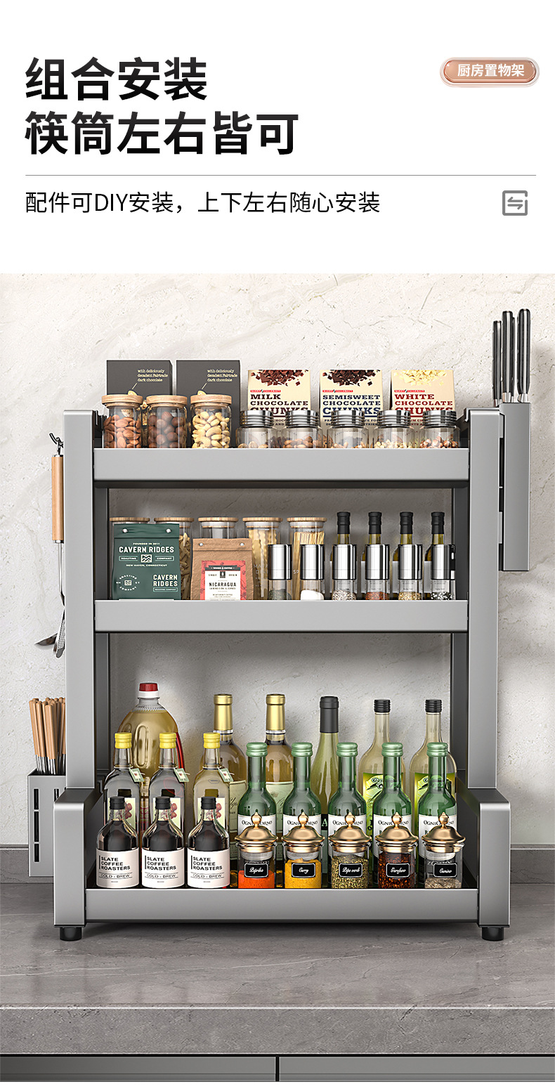 調味料棚銃グレーキッチン棚カウンター調味料収納棚簡易取付箸籠調味料棚付き