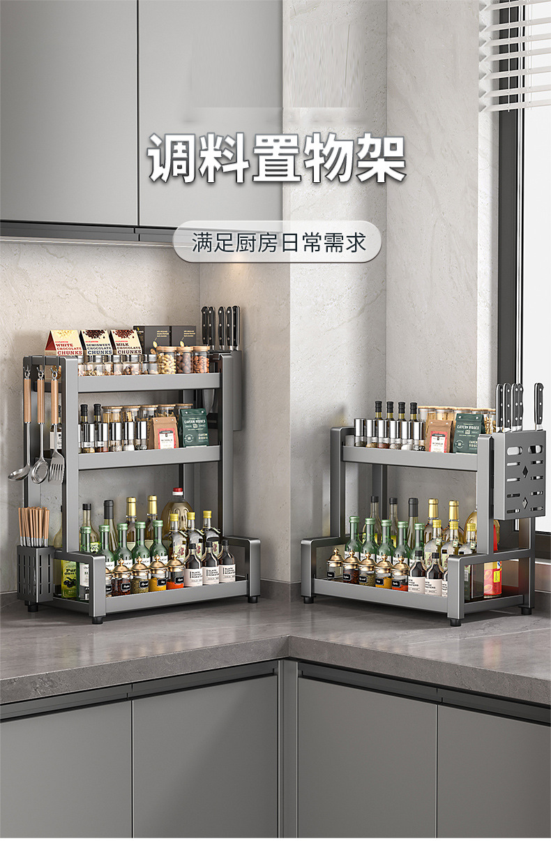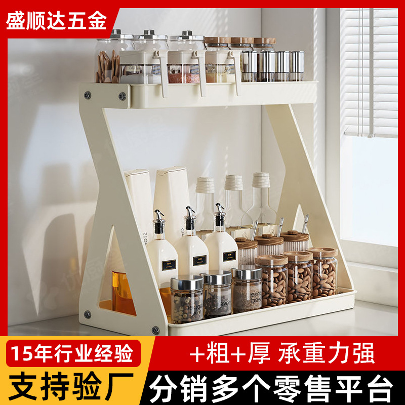 厨房调料置物架家用双层调味料收纳架台面多用途油盐酱醋收纳架子