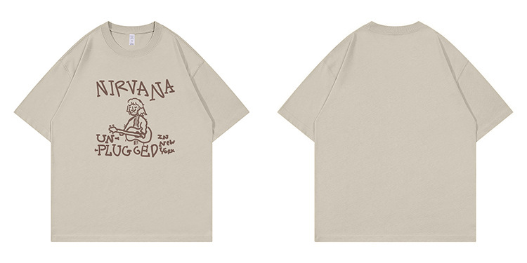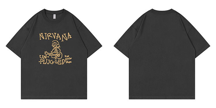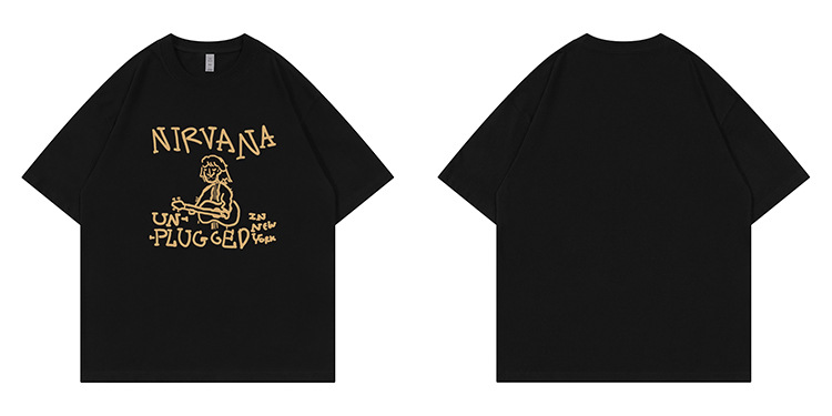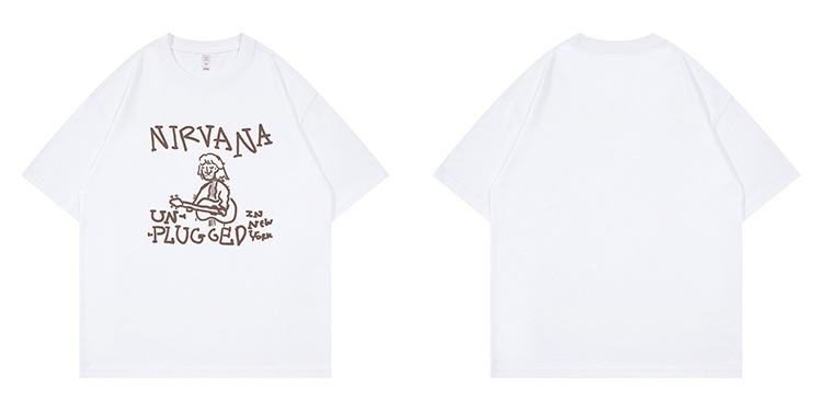 Nirvanaネバーランドバンドアメリカンカジュアル手描き落書き落書きショルダーゆるい丸首ロック半袖tシャツ白