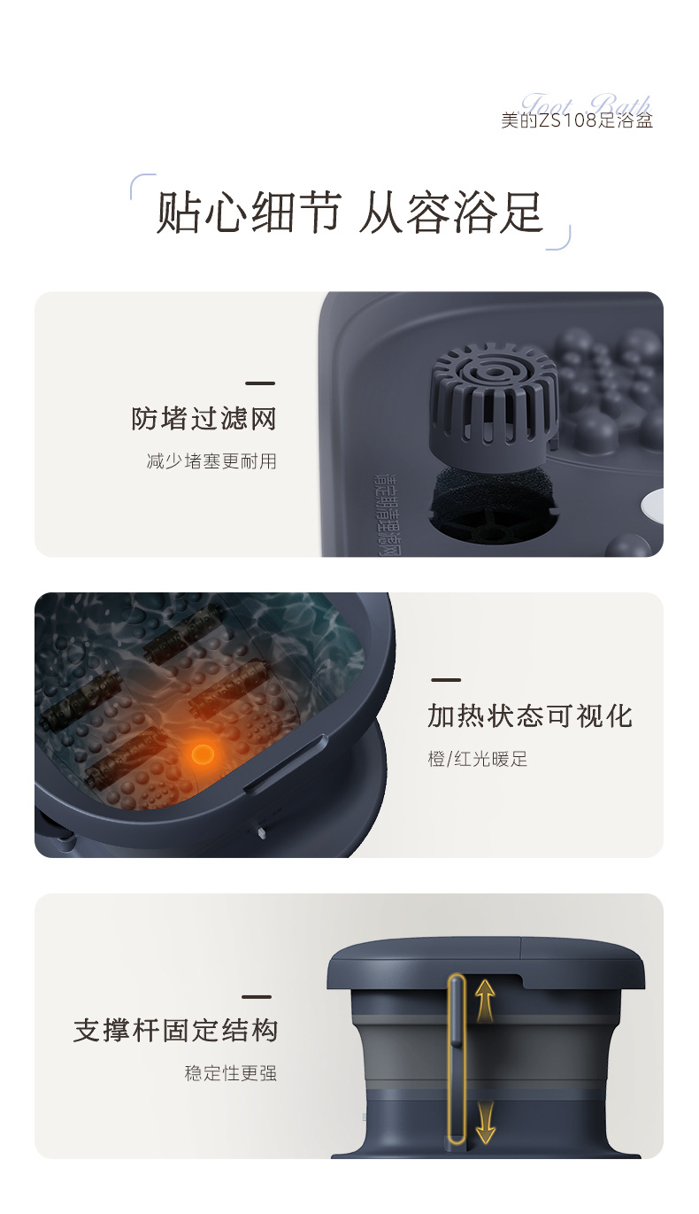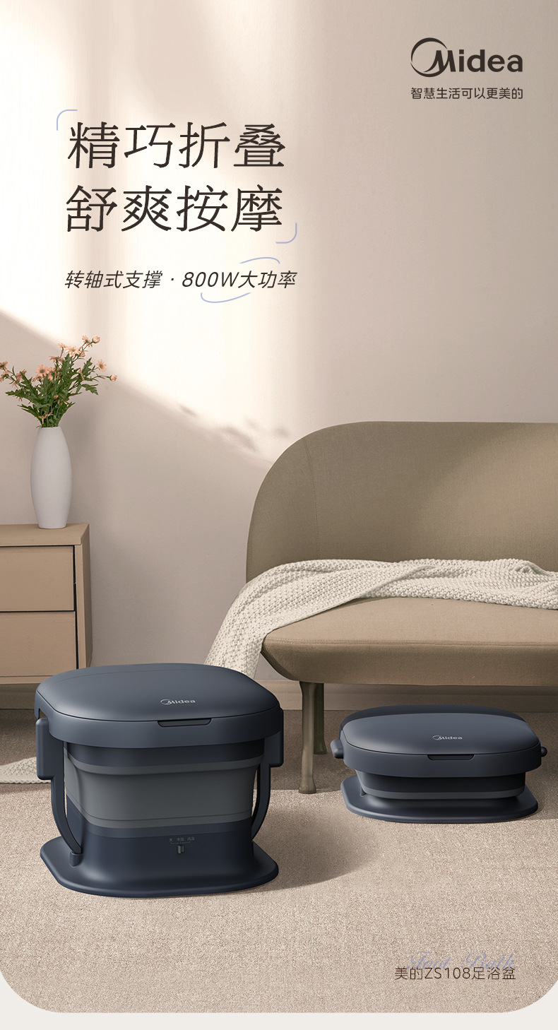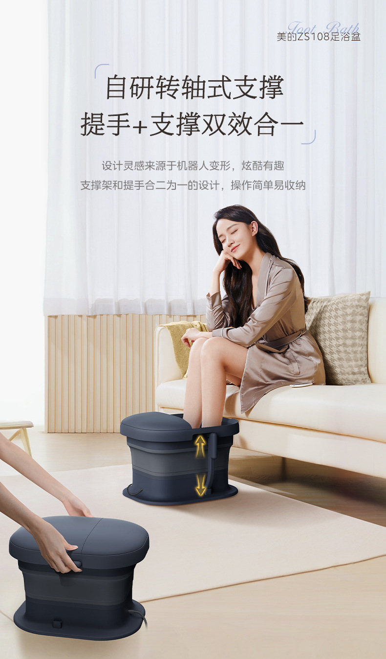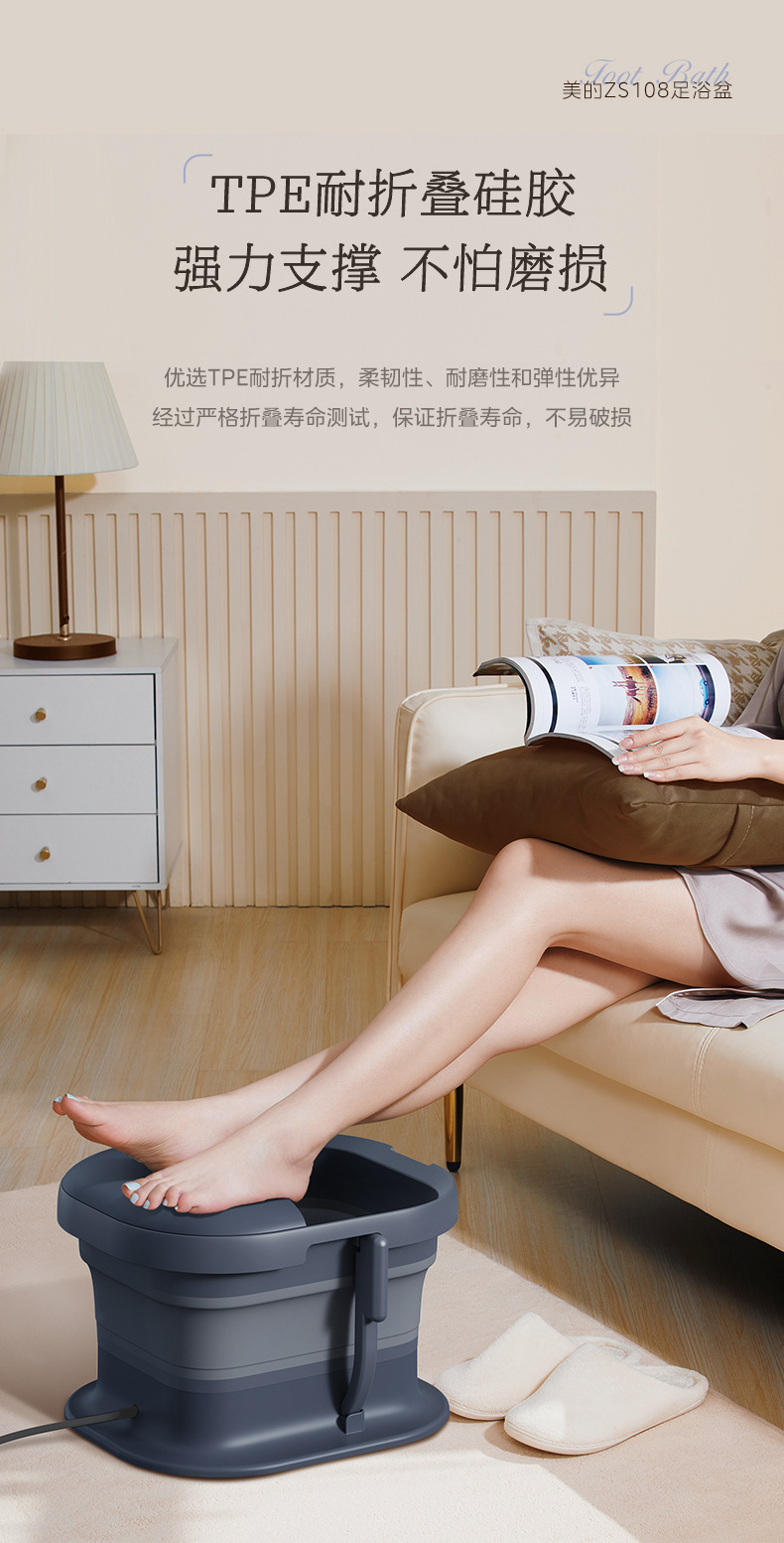 美的泡脚桶折叠恒温加热足浴盆家用全自动养生按摩桶洗脚盆送长辈