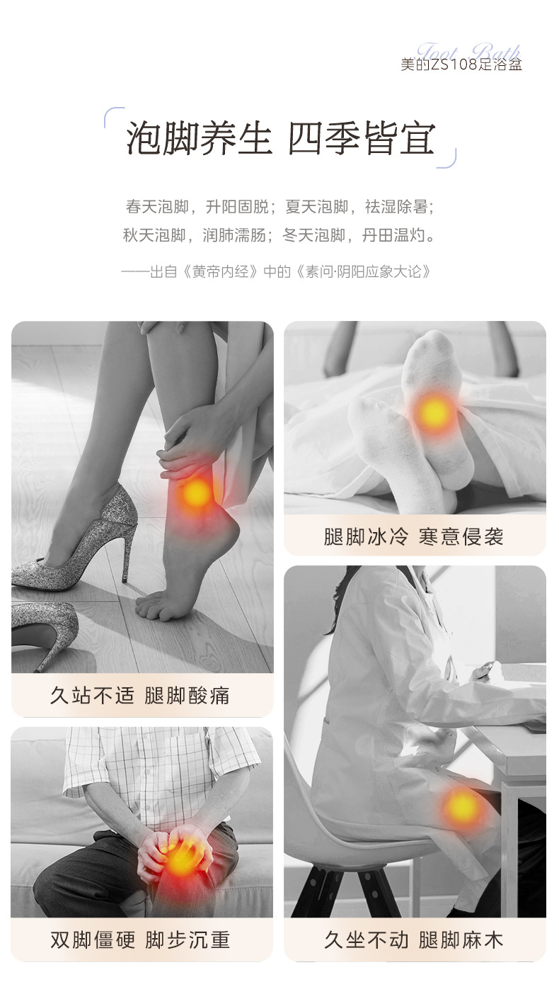 美的泡脚桶足浴盆全自动按摩洗脚盆智能高深杀菌桶足浴盆ZL2