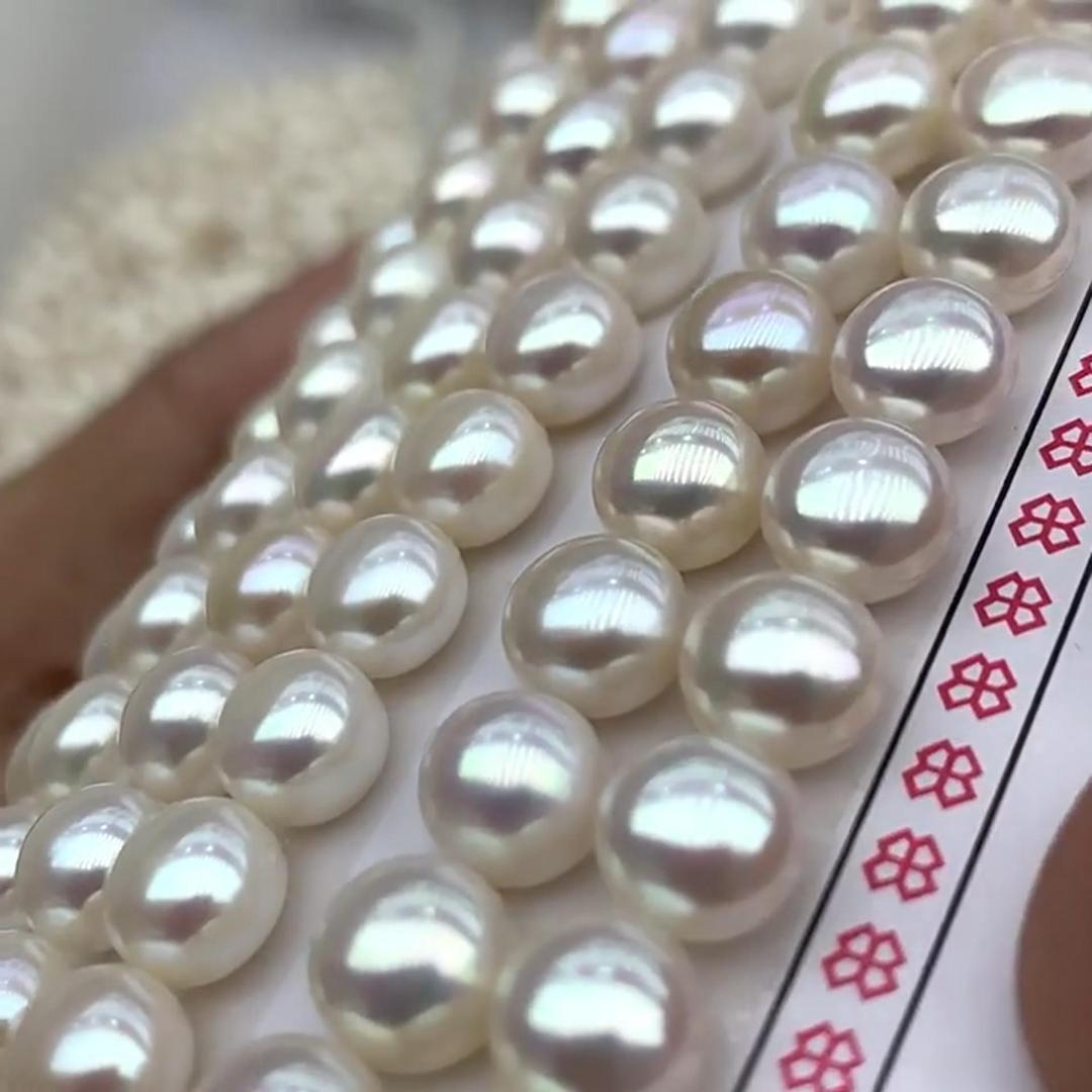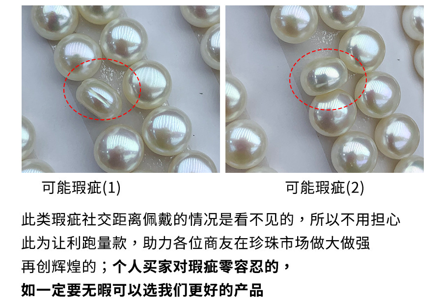 此款珍珠是面包型形的,侧面看像算盘形状的,正面圆,各位亲需要认真看清楚图片详情