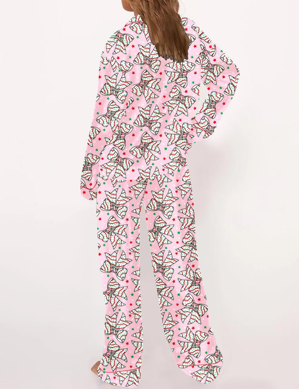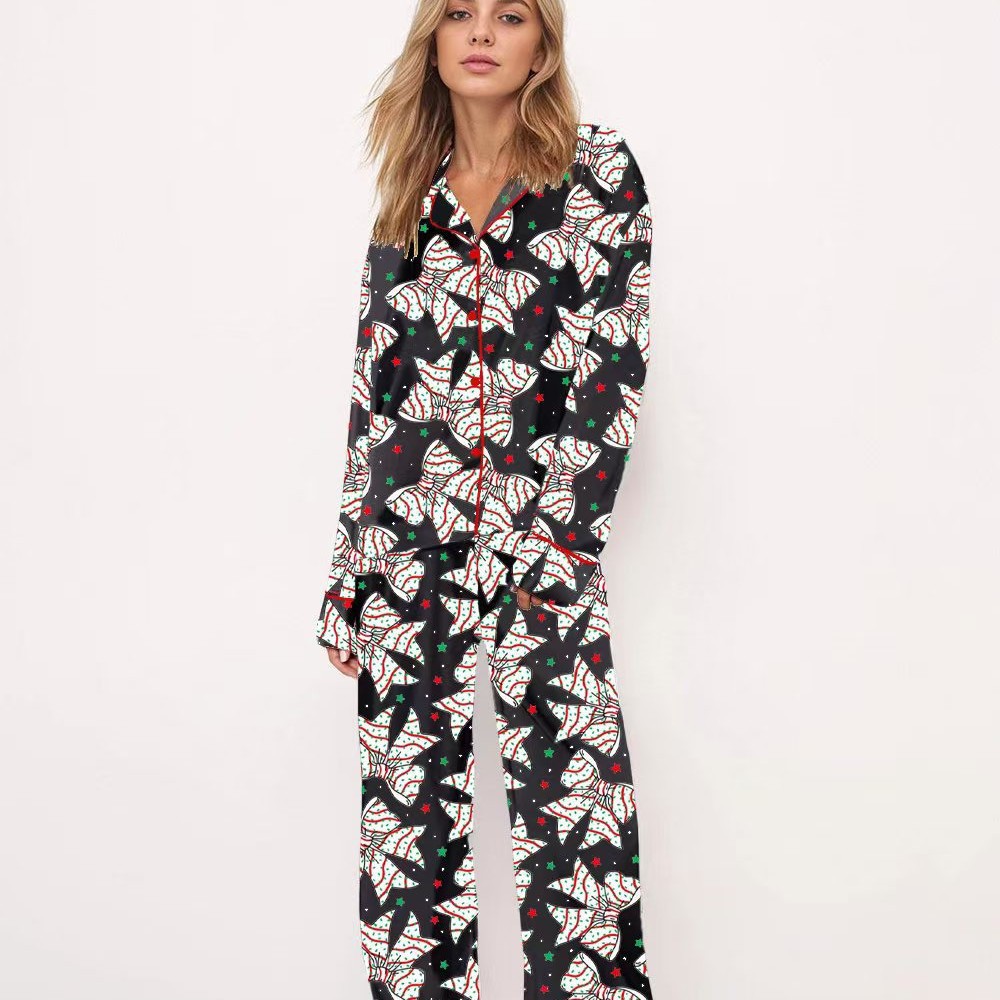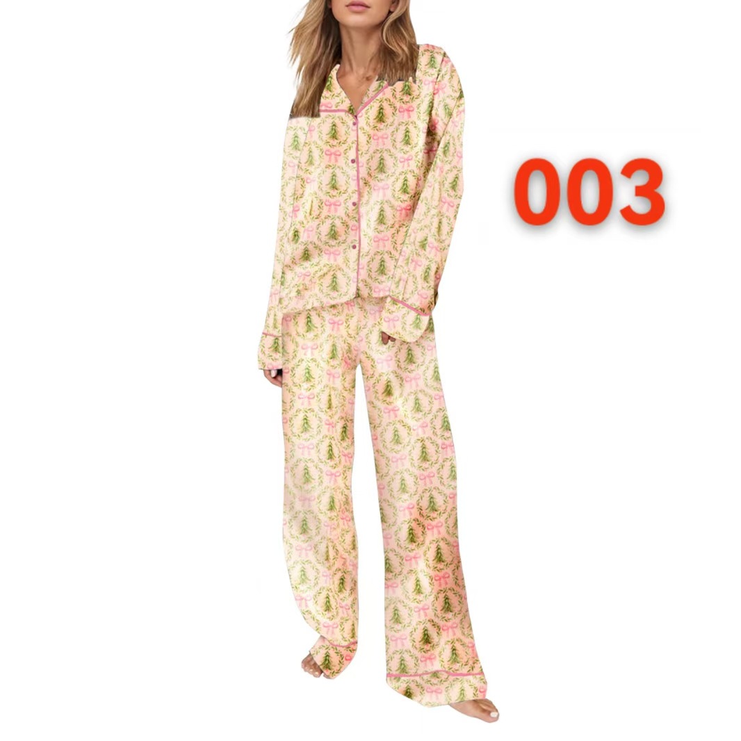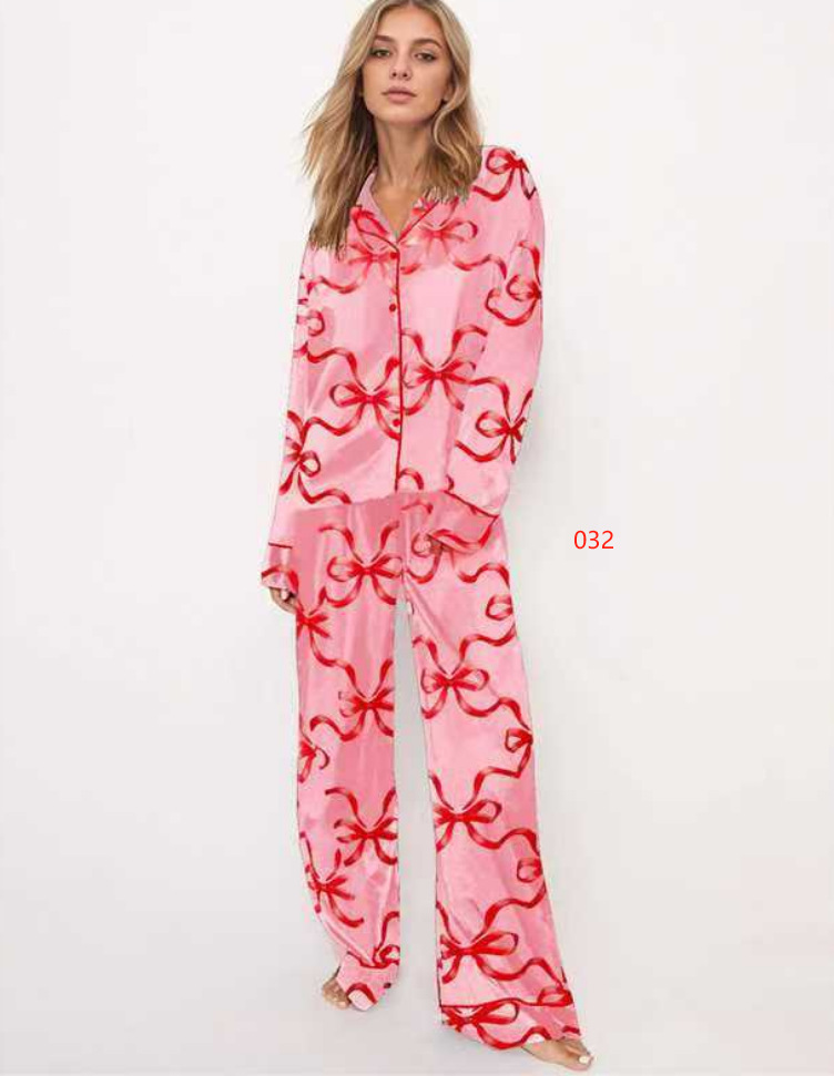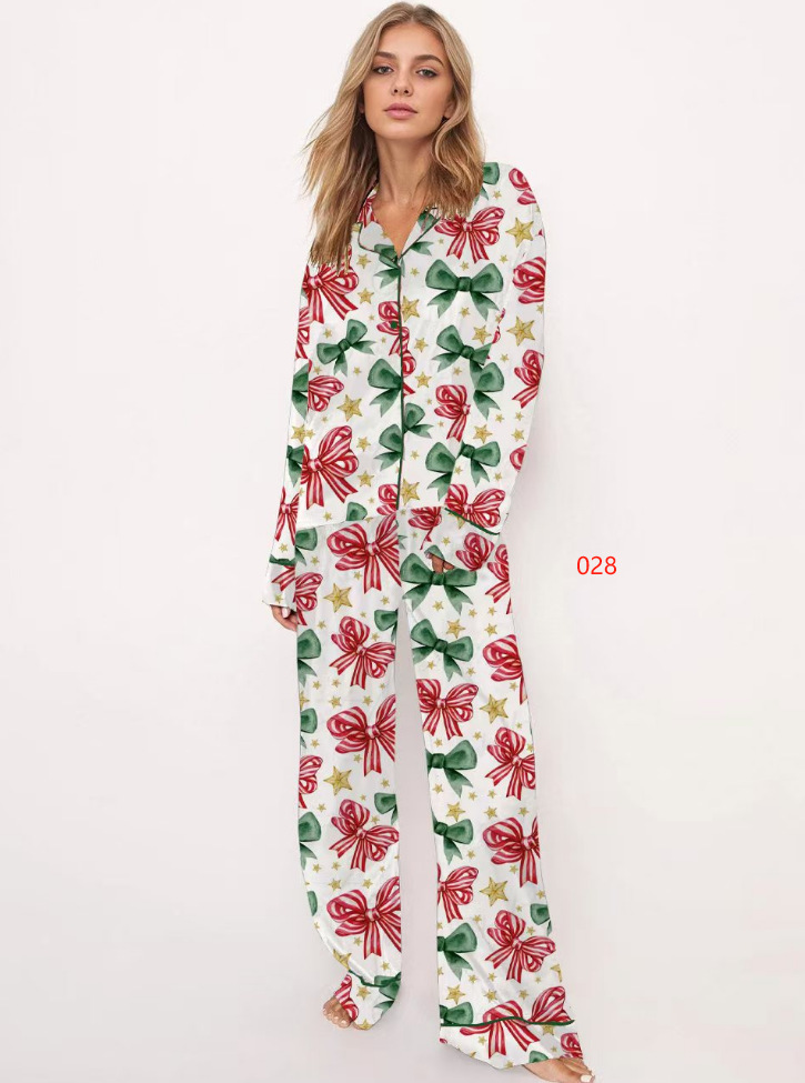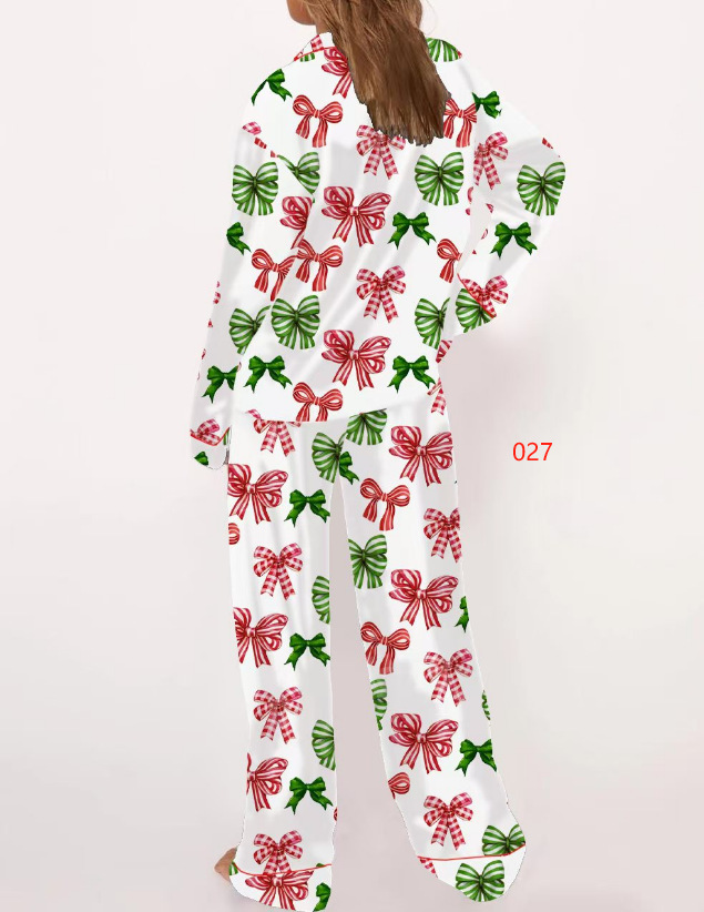 外国貿易蝶結びプリントパジャマセットクロスボーダー夏氷糸涼しいホームウェアパジャマ快適休暇シャツ