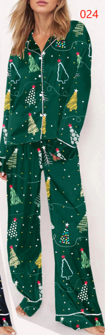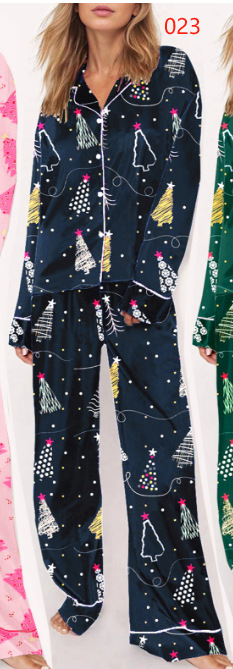 2024純色起爆アマゾン新商品欧米女性彩綿衛衣襟ボタンパジャマ家服セット