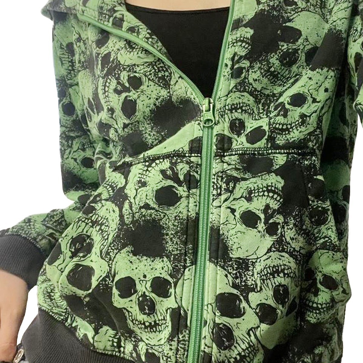 アマゾン秋冬の新型プリントのパーカーのスカルのプリントのファスナーの門限のねじは帽子のパーカーと一緒にいます。
