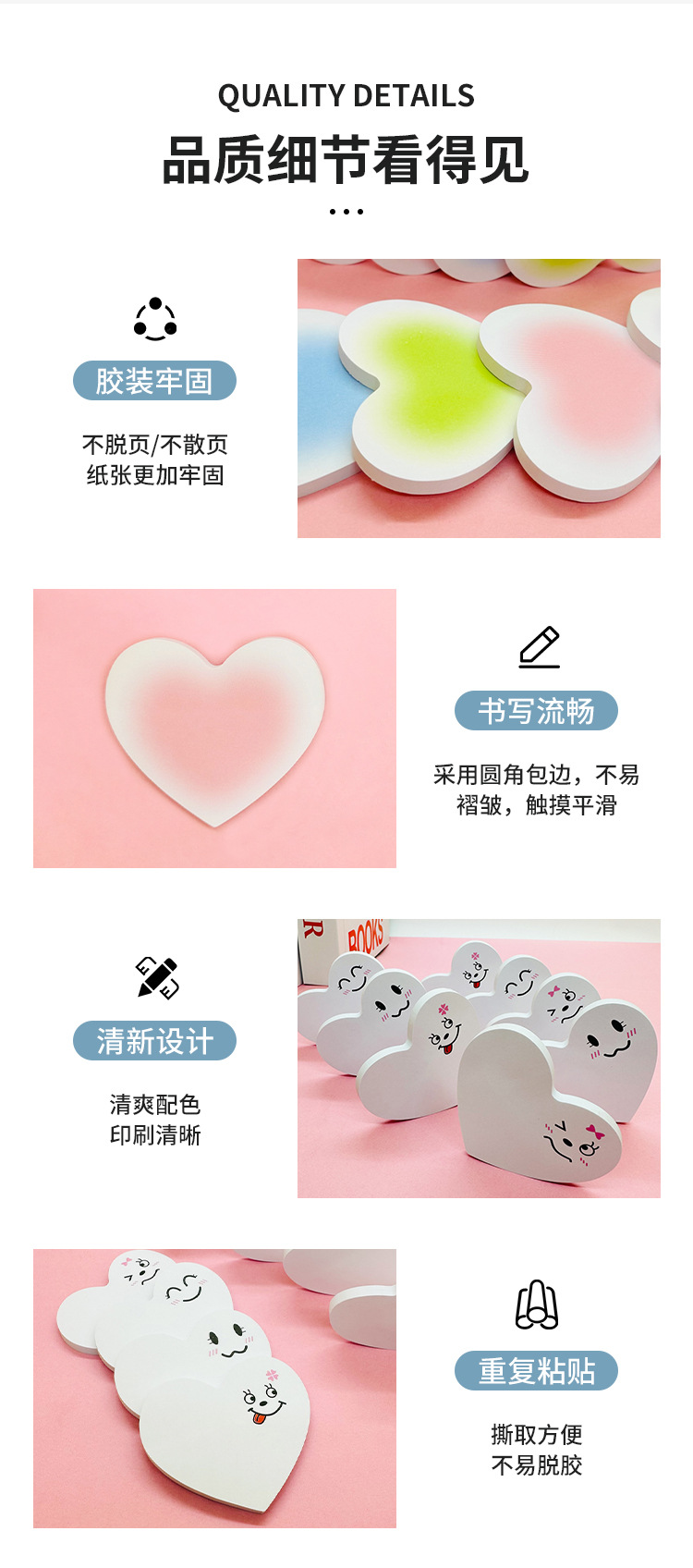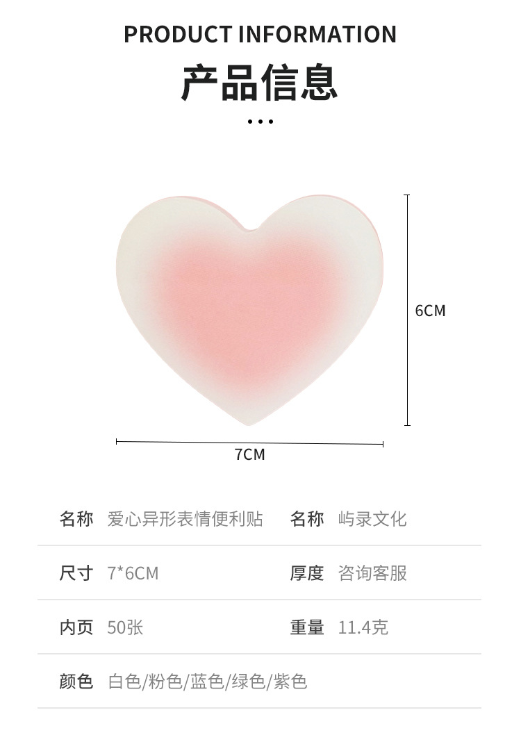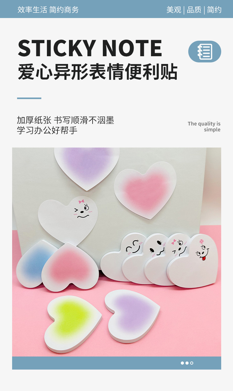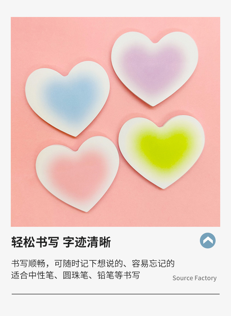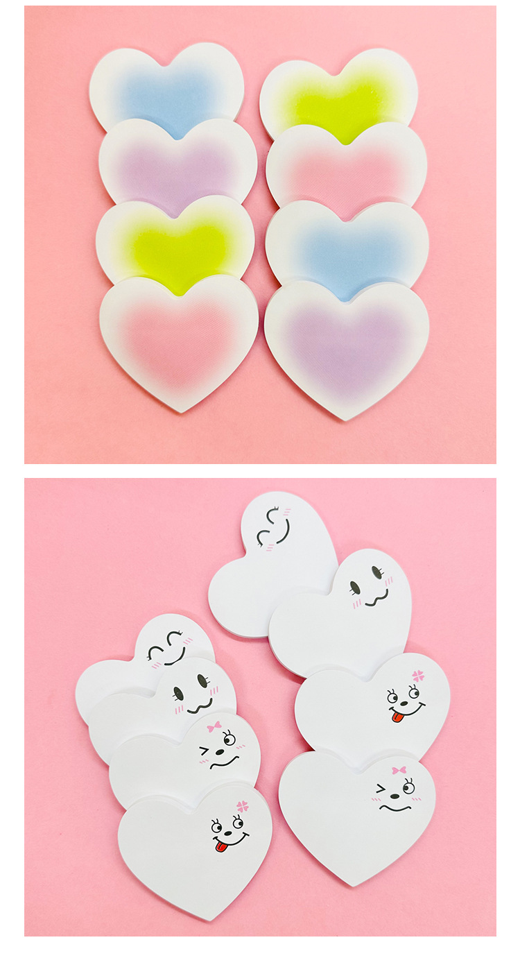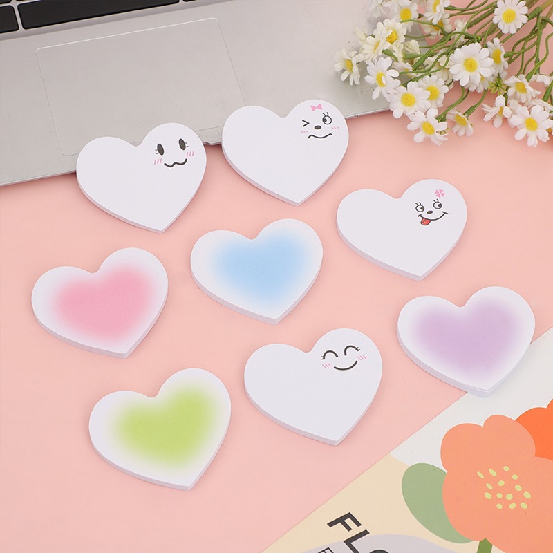 グラデーションラブハートポストイット、キュートで見栄えの良い、インスタイル学生用メモ紙、粘着性の高いメッセージノート、n回貼れる