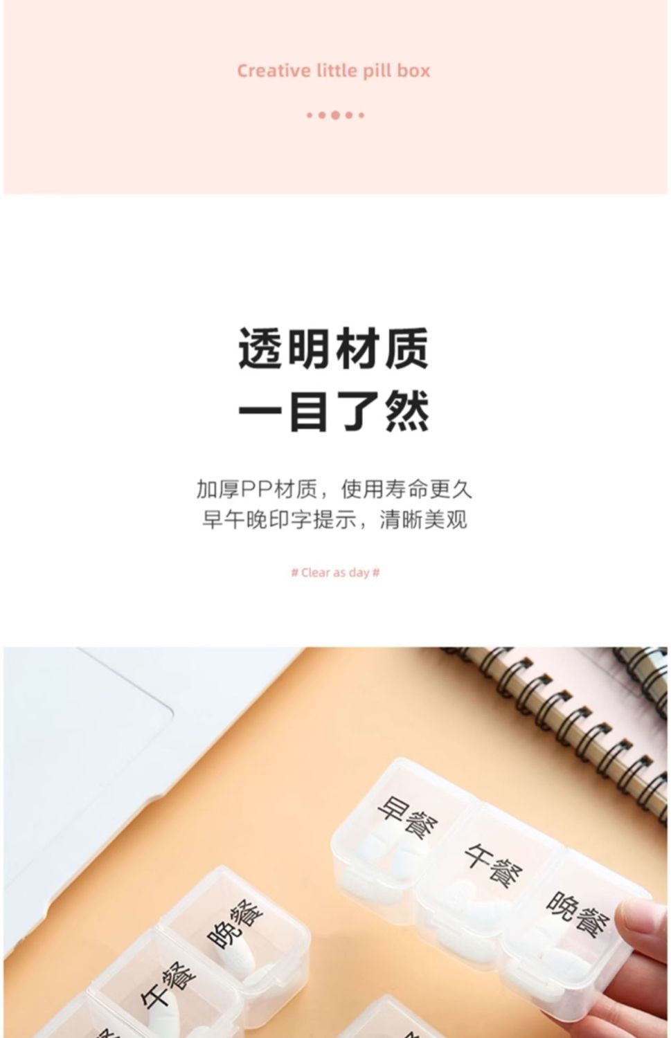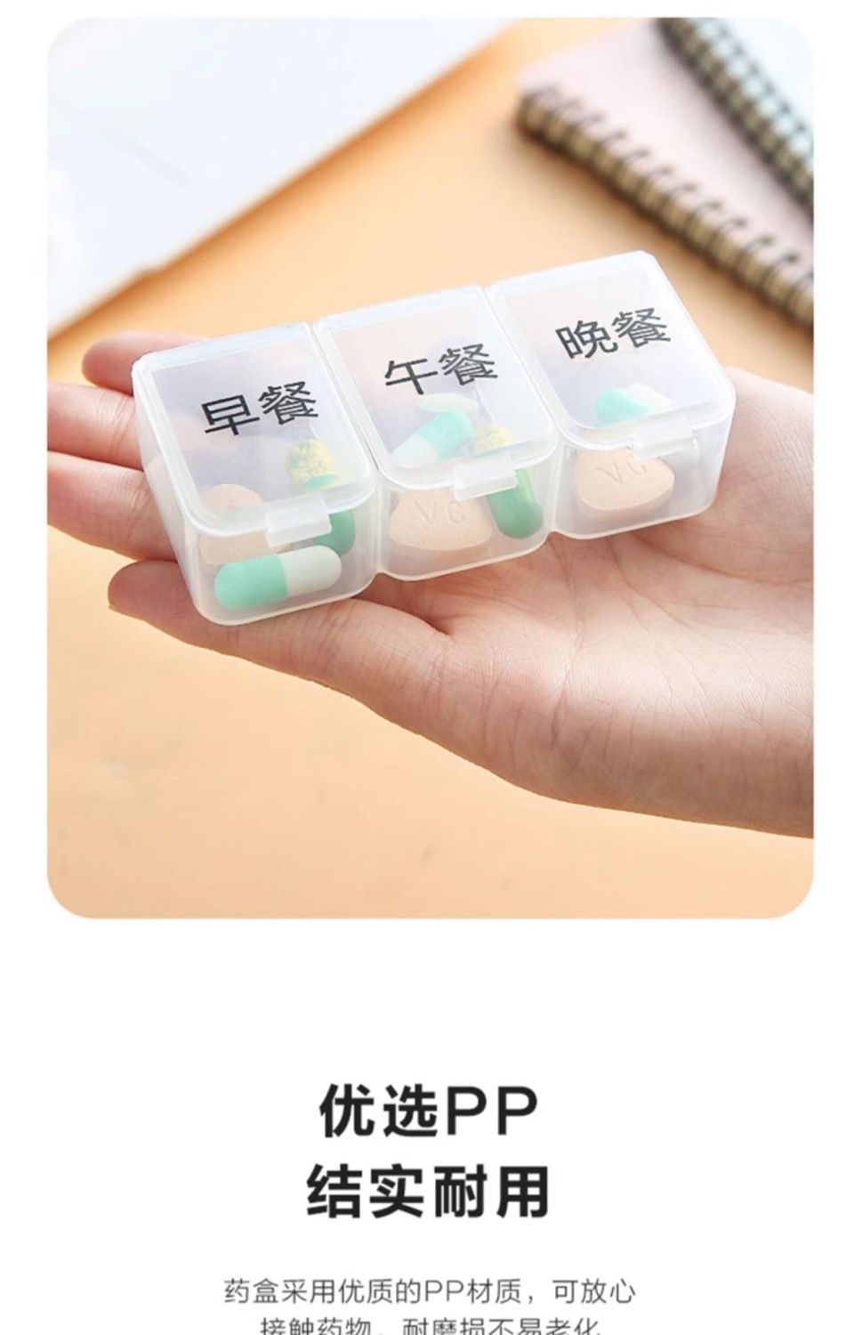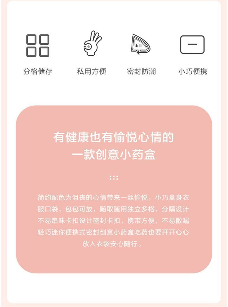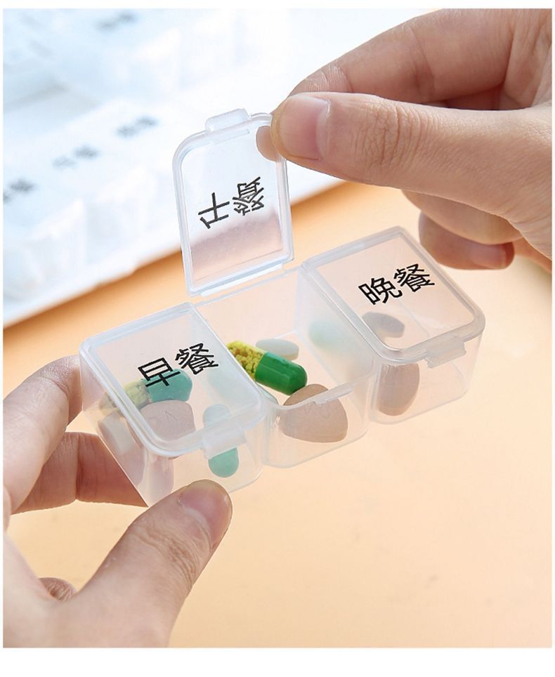 三食の薬箱は朝の晩に携帯して朝の昼の晩に携帯して小さい薬の箱の3格の薬物の大容量を携帯するように注意します。