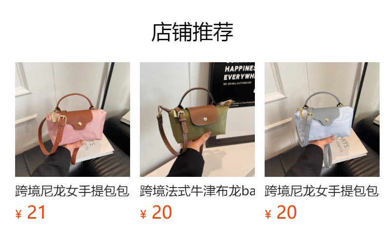 复古时尚尼龙饺子包跨境2025女包bags单肩斜挎手提包质感包包