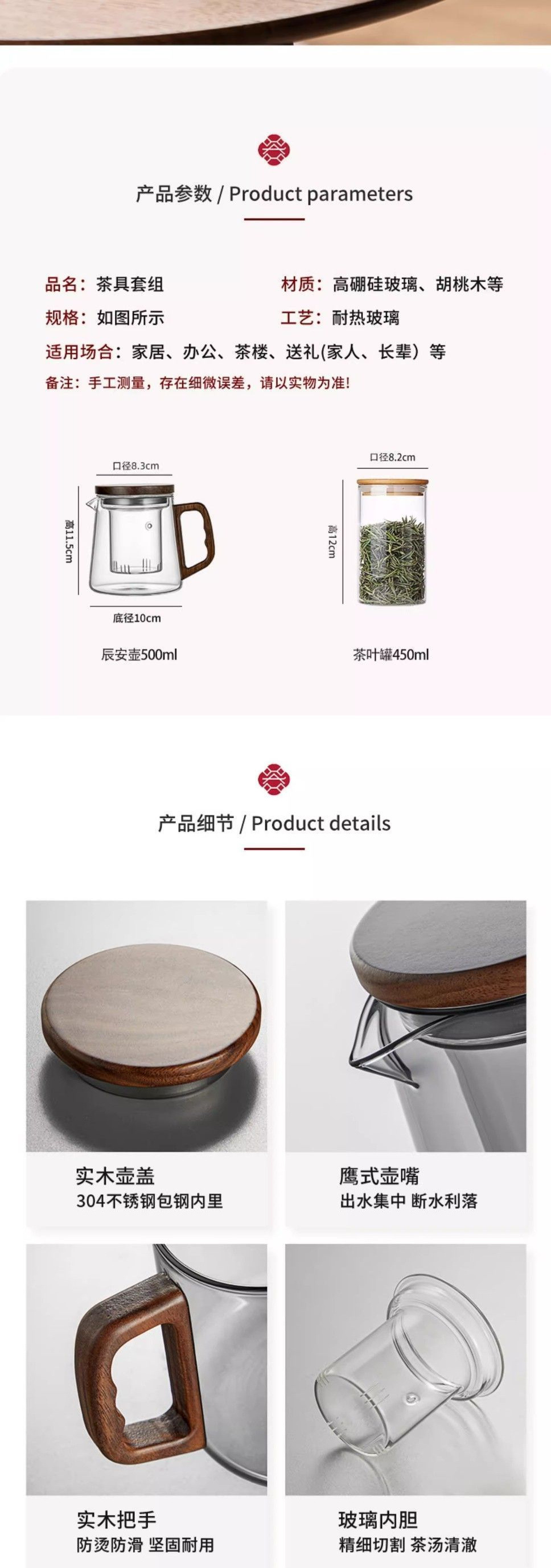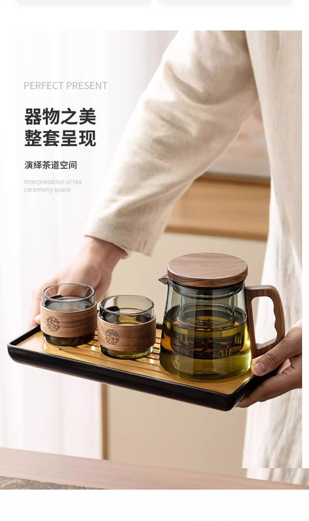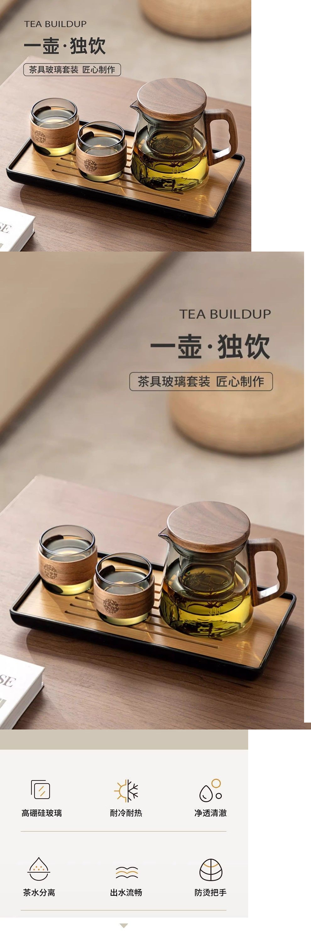 耐熱厚手防爆ガラスティーポットフィルター茶水分離軽贅沢家庭用オフィス工夫茶器セット