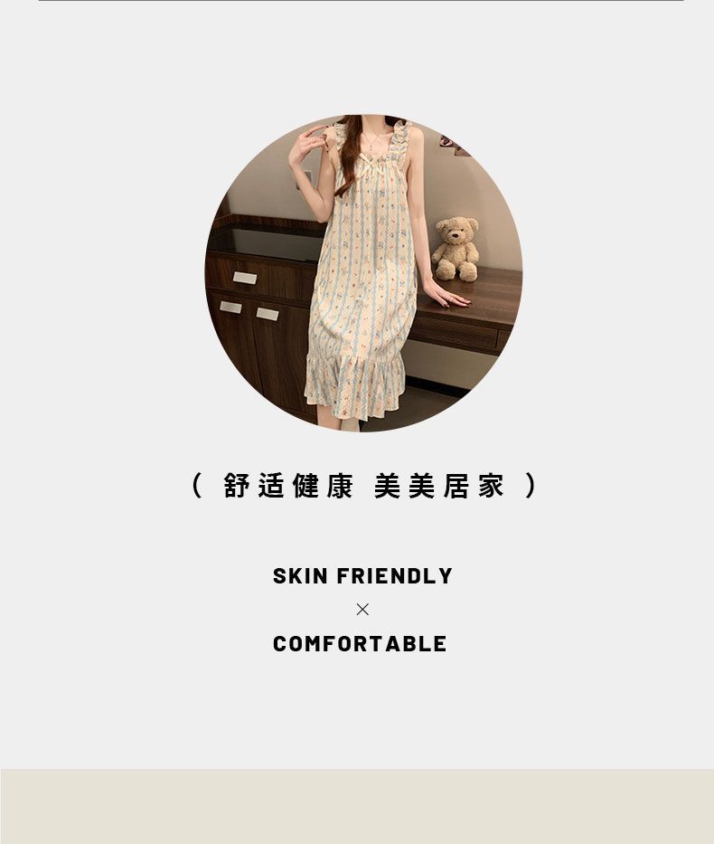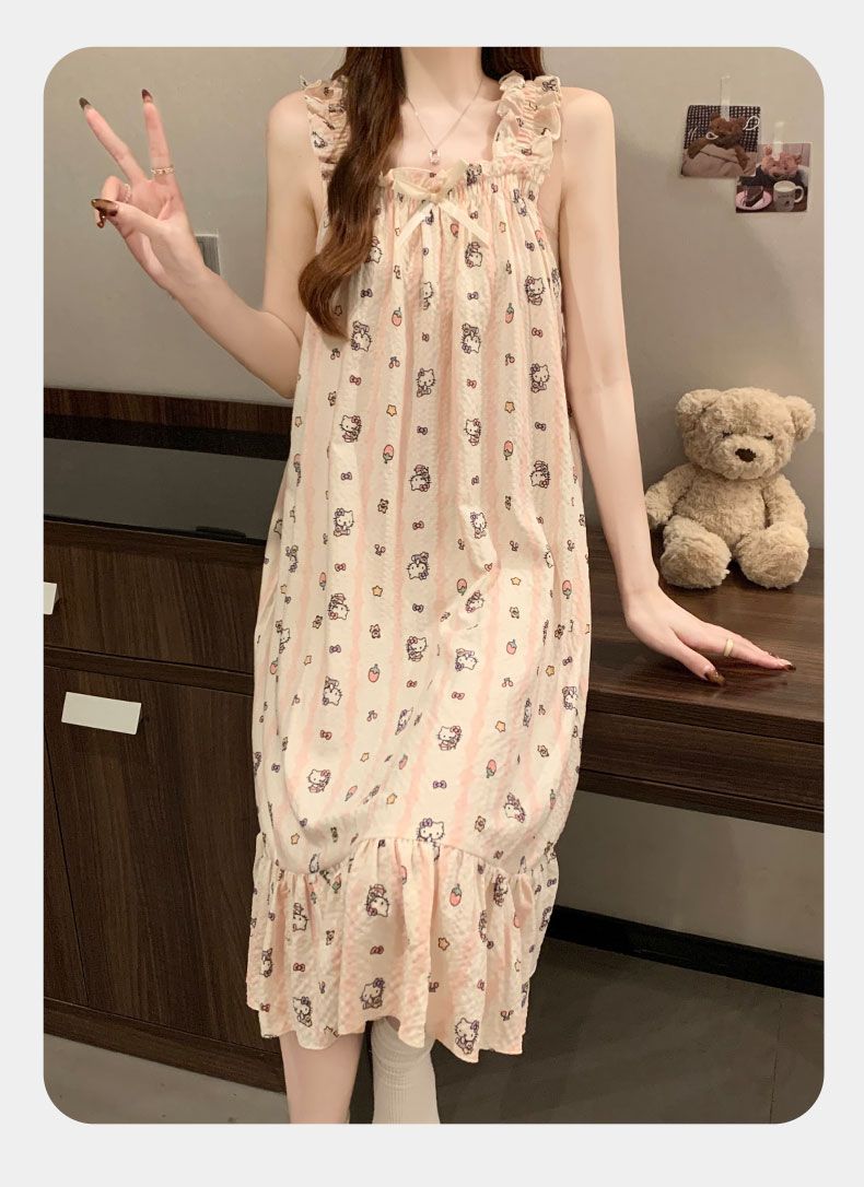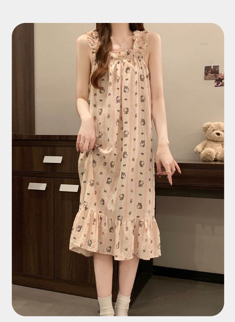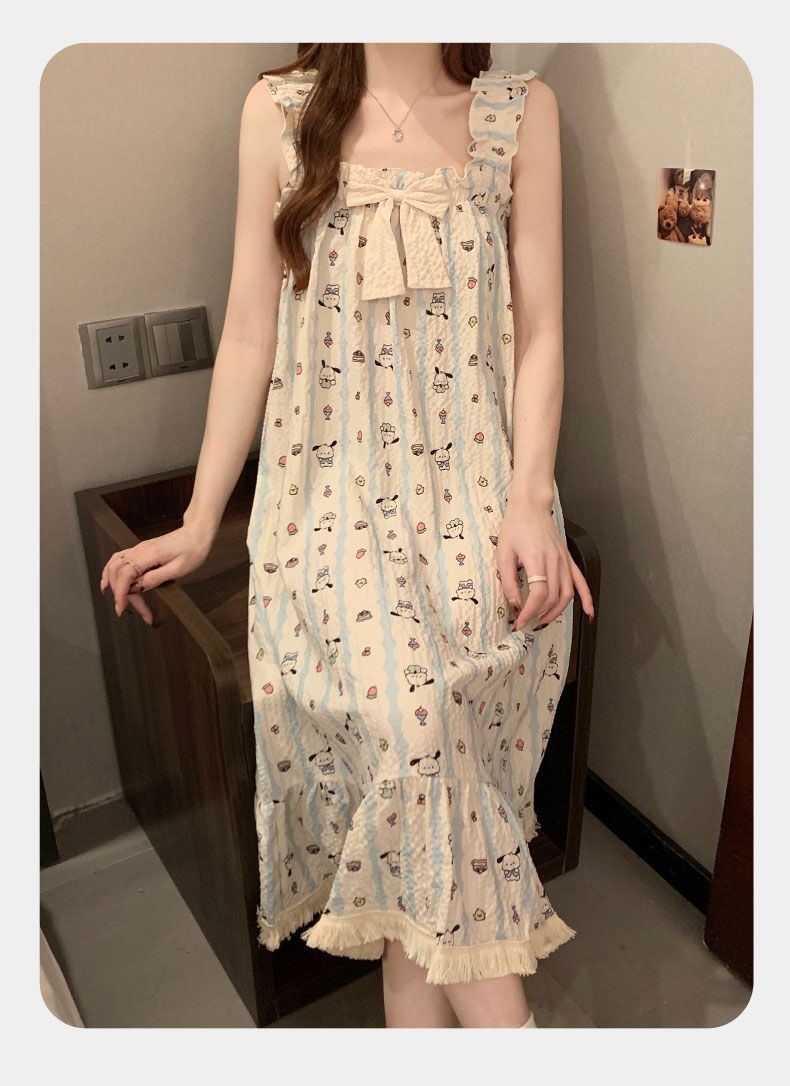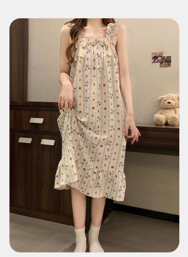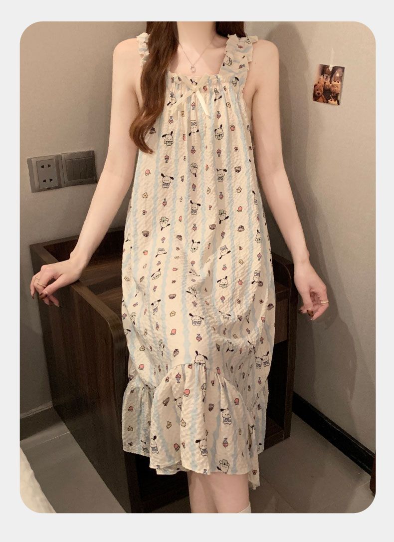 睡衣女夏季新款泡泡棉无袖吊带中长睡裙少女甜美可爱家居服可外穿