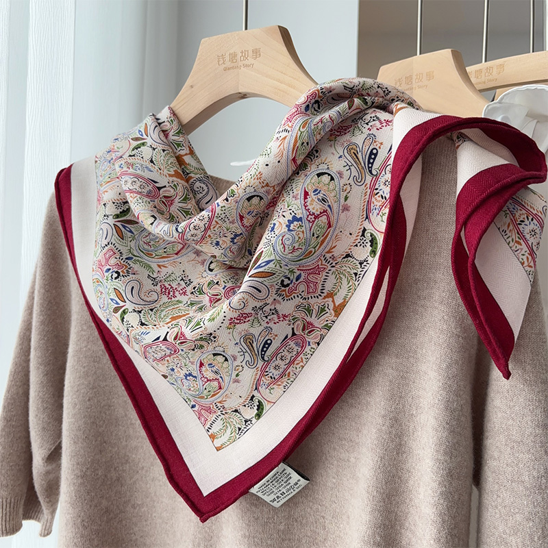 佩斯利经典款65cm真丝羊毛丝巾双面围巾女士高级感防寒系脖中方巾