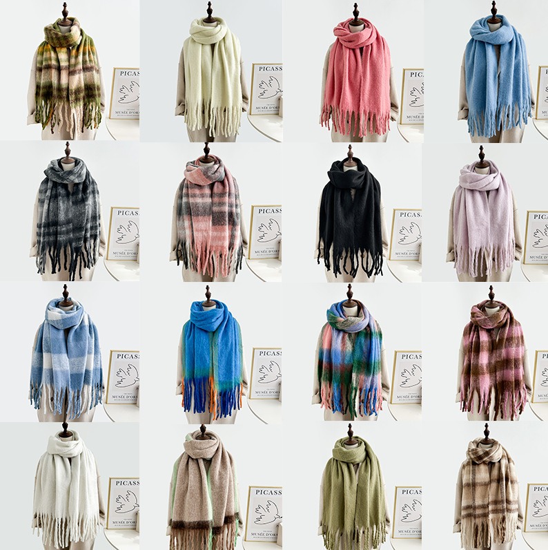 美ラード風格子馬海毛マフラー女性冬高級感ストール両用韓国版保温学生マフラー