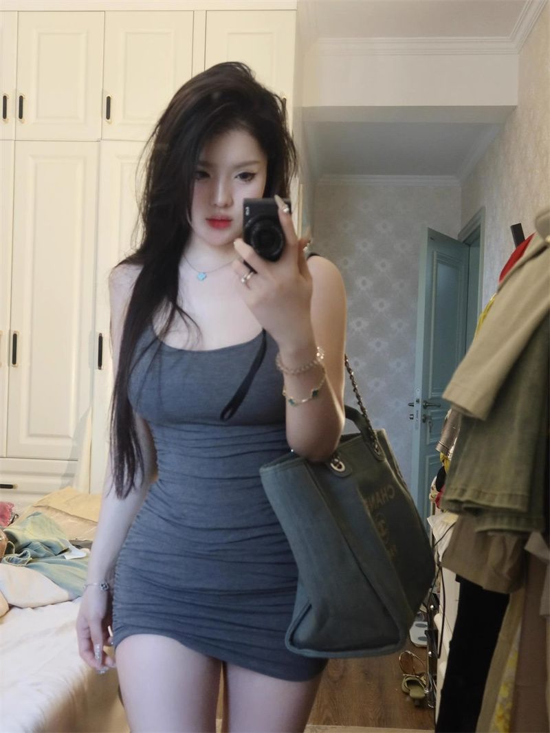 小柄な純欲セクシーなストラップワンピース女性の夏の気質デザイン感があります。