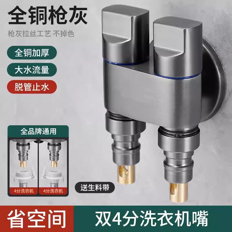 全銅角弁一進二出洗濯機蛇口一分二自動止水口二重出水二重制御二重開
