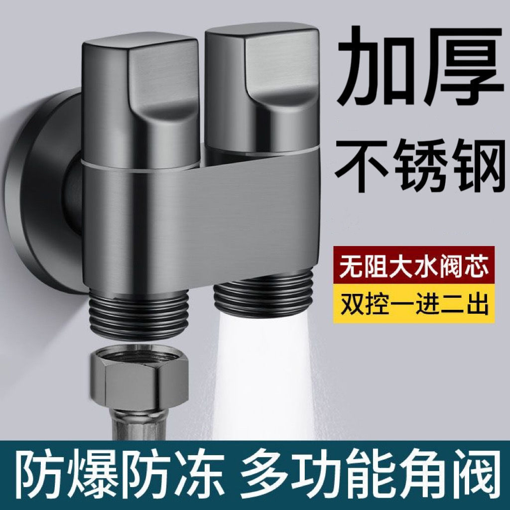 4分不锈钢一分二角阀一进二出三通分水阀双出水角阀双头双控双开