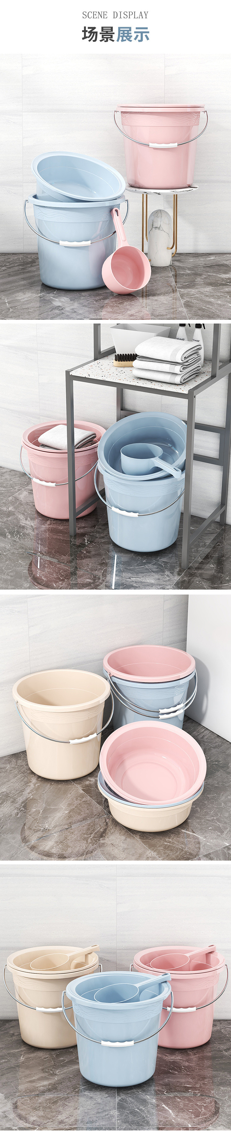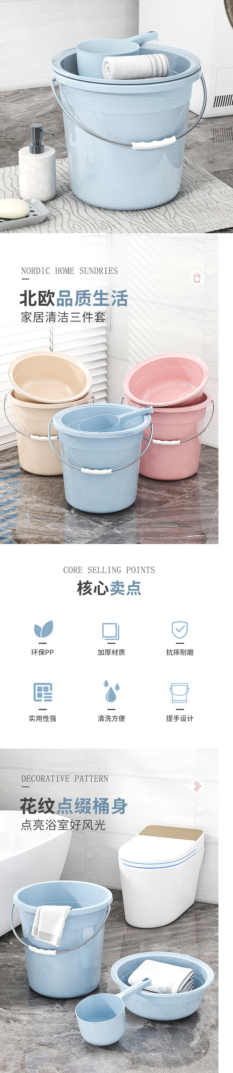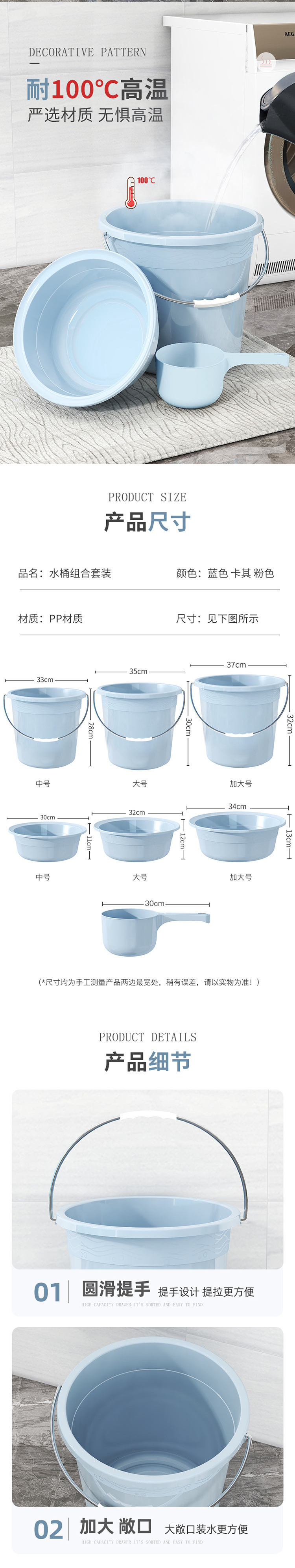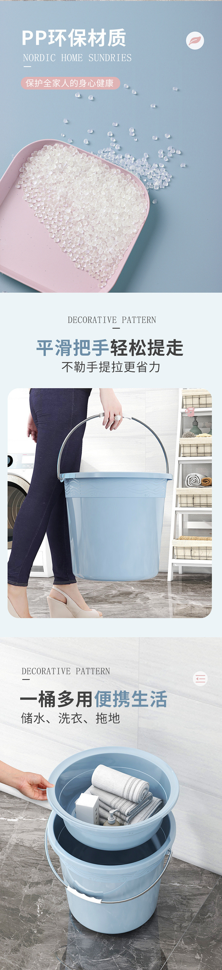 バケツカバー付き家庭用大容量厚手寮洗濯バケツ手提げバケツ風呂バケツホットプラスチック3点