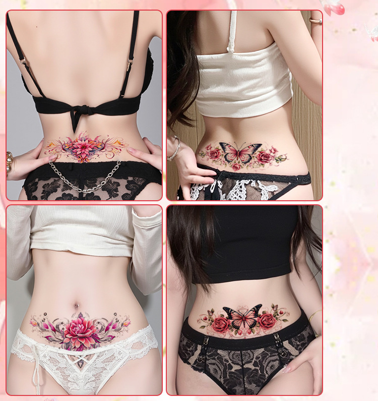 花と蝶のテーマのカラフルなタトゥーステッカー、大きなサイズ、防水、女性用、長持ち、腰用、花と蝶、高級感
