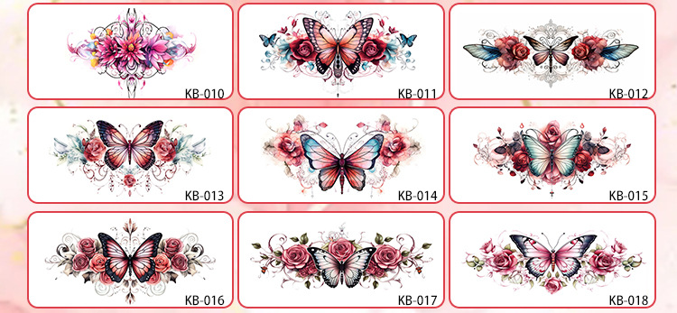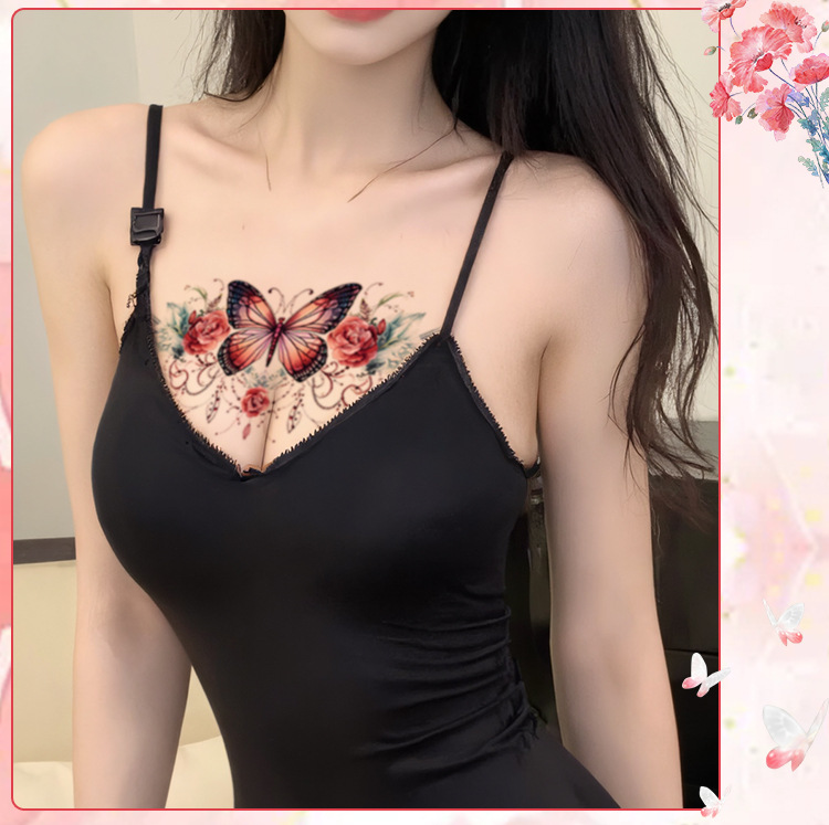 蝶の花の刺青の女性の防水の持続的な草本の半永久的な高級感の鎖骨insの腕の花の腕の2024