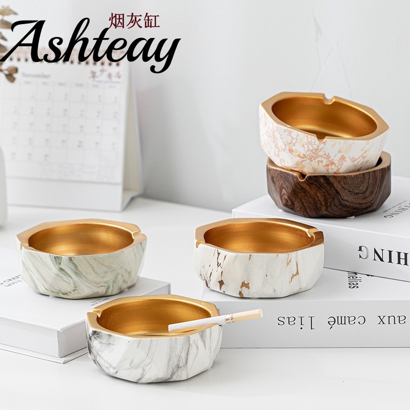 クロスボーダー陶磁器灰皿オフィスリビングルーム家庭用ホテルネットカフェ創意潮流八角形内金灰皿