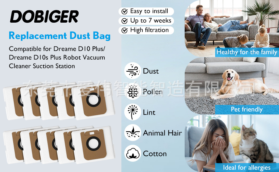 DOBIGER 10个真空吸尘器袋,与Dreame D10 Plus / D10s Plus / L10 Plus兼容
