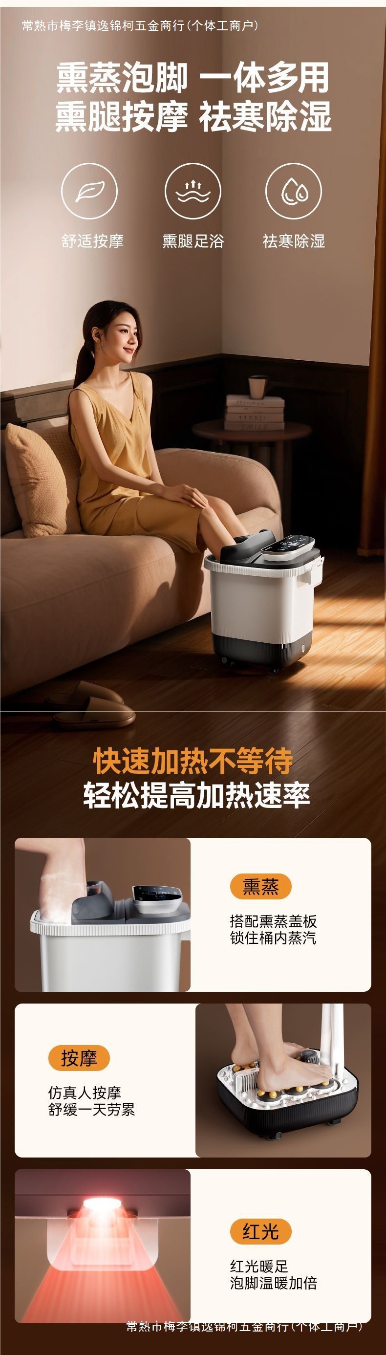 仕様 全自動最上位モデル - 冷水急速加熱 + 手揉み + 高さと深さの増加,足踏みデジタル表示モデル - 自由温度調整 + インテリジェントタイミング + 指圧マッサージ,足踏み燻蒸モデル - 3段階温度調整+循環加熱+燻蒸バブル,フットアップグレードモデル - 2段階温度調整+ピルボックス,スタンダードモデル ワンボタン暖房
