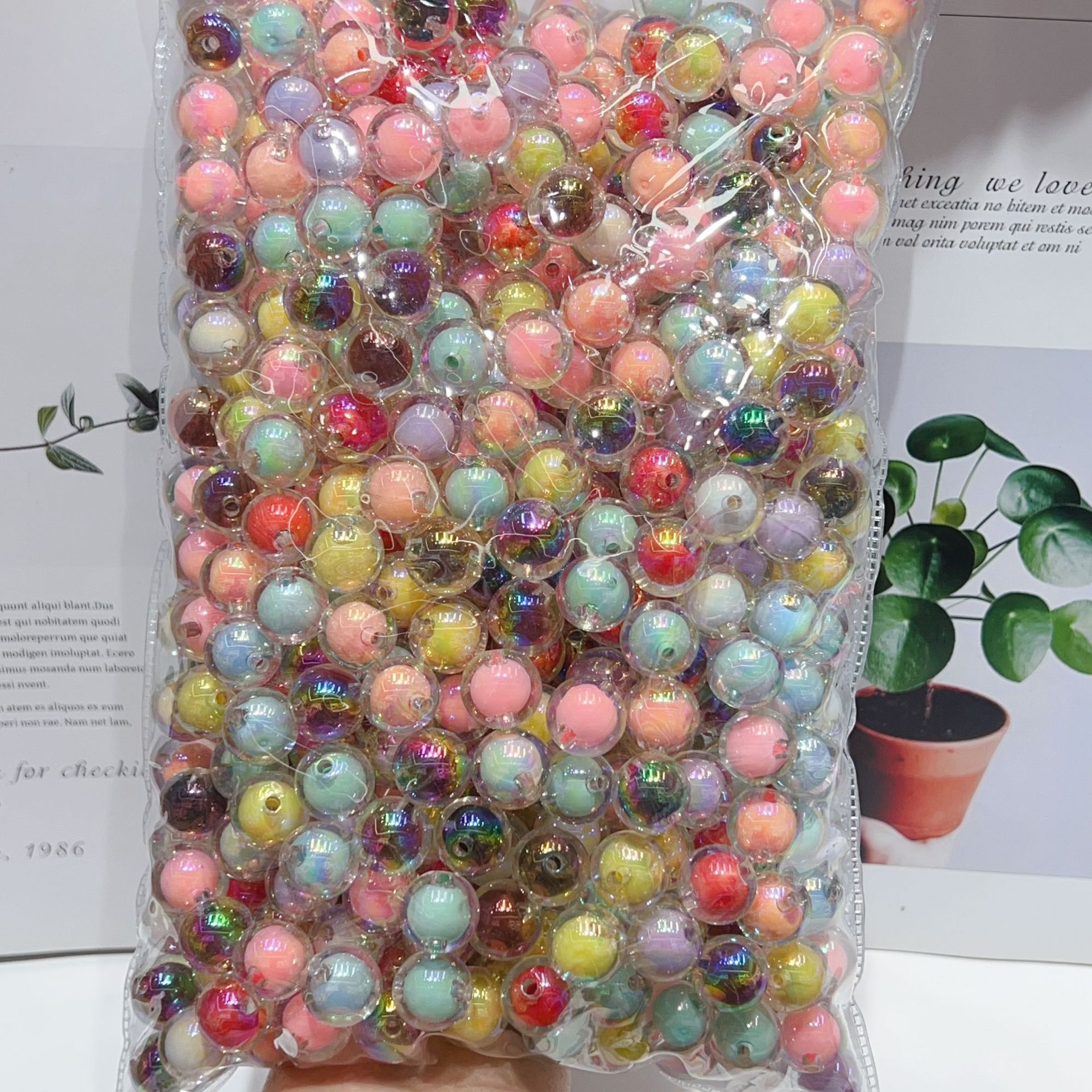 カード16七彩メッキ珠中珠手絵珠素材diyブレスレット車掛けビーズメーカー卸売り