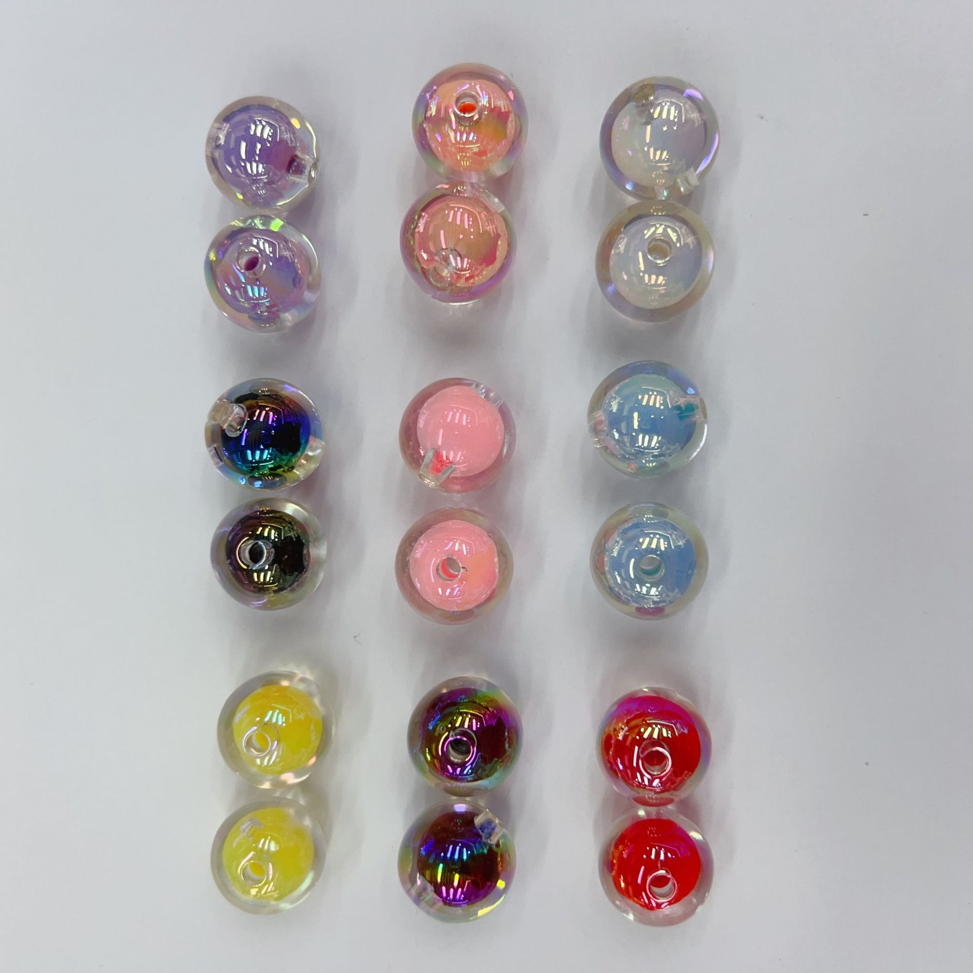 16mm七彩UVメッキアクリルストレートビーズ中珠ボールDIY手作りビーズストラップ部品