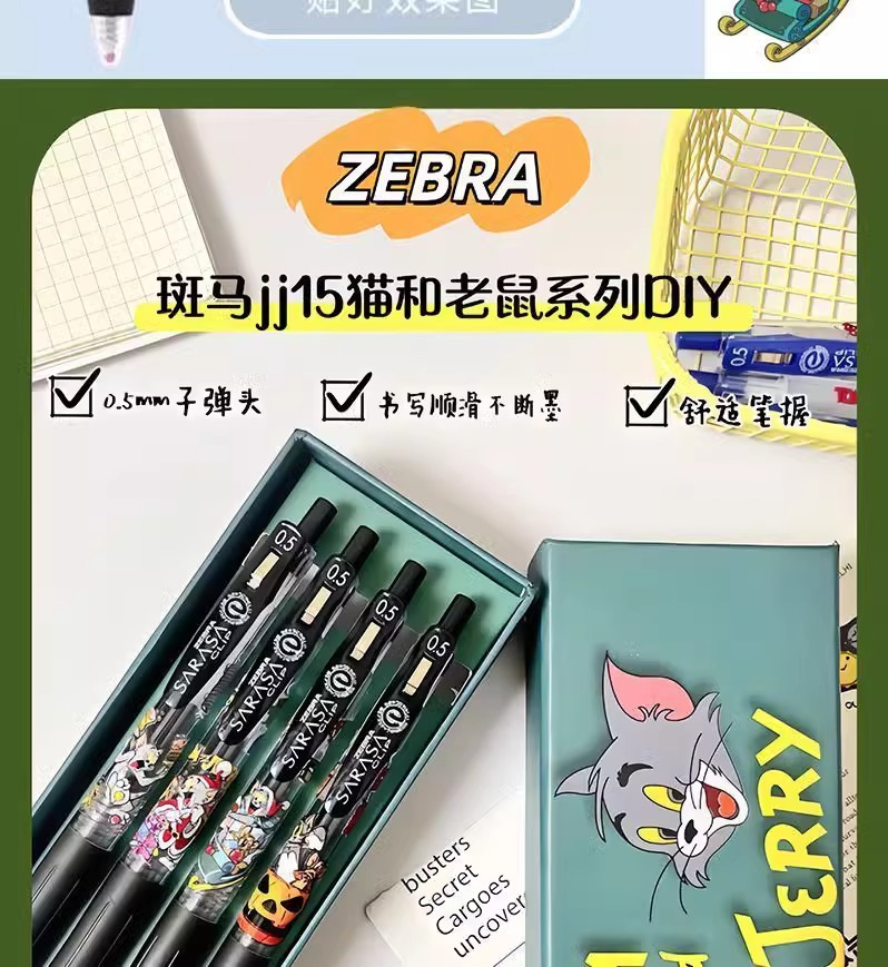 日本ゼブラシマ中性ペンJJ15猫とネズミ限定DIY学生用黒水筆アニメかわいい