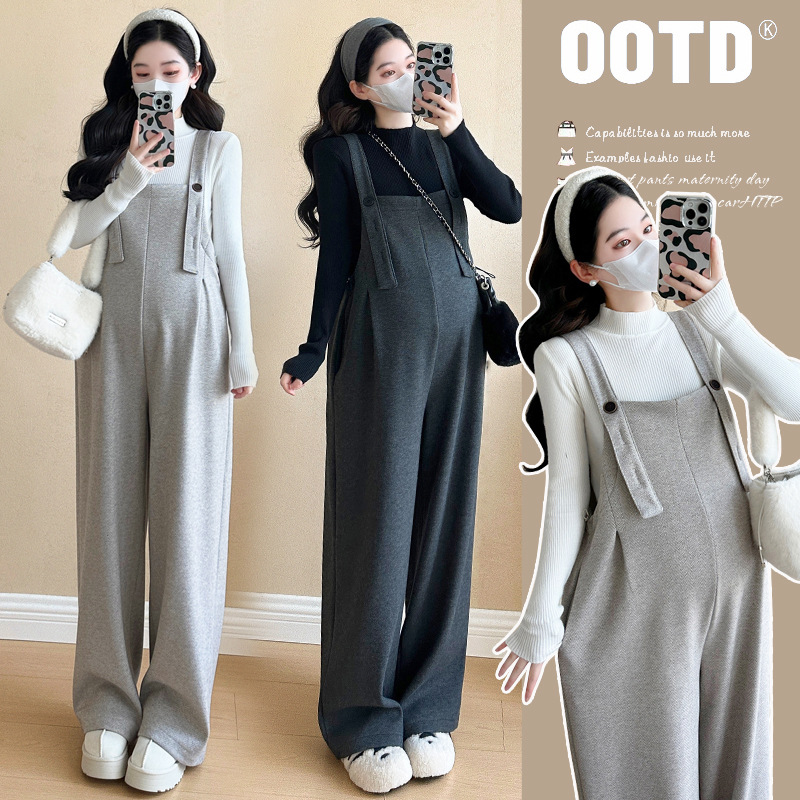 妊婦のズボンの秋冬のタイプは厚いメリヤスのワイドパンツを着ています。