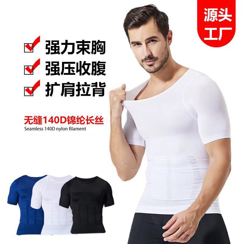 クロスボーダー140Dナイロン長糸男性のシェイプアップ服は腹を閉じて胸を隠して肉を隠します。