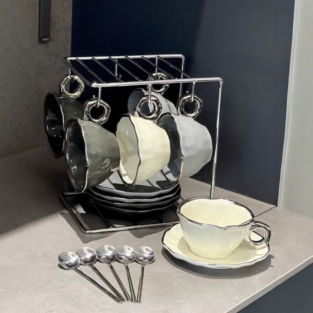 ライト高級コーヒーカップホルダーセラミックカップとソーサーホルダーアフタヌーンティーカップ収納ラック日本とヨーロッパスタイルのコーヒーカップホルダー