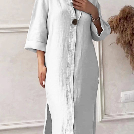 東南アジアアマゾンTEMUクロスボーダー新型気質ファッションボタン純色ロングワンピース外国貿易卸売り黒