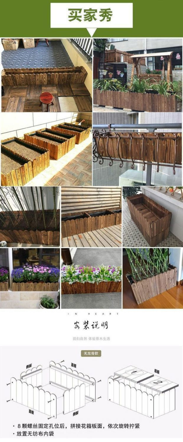 防腐木花箱栽培箱屋外ベランダ庭花箱組合せ長方形庭花鉢実木質工場